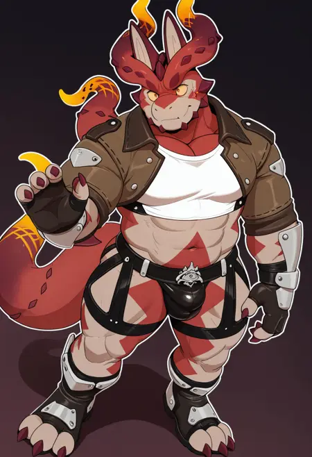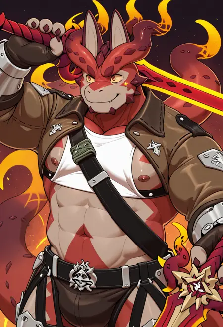 Illustrious: best quality, amazing quality, very aesthetic, absurdres, newest, cthugha, furry, furry male, 1boy, solo, bara, tentacle hair, yellow sclera, crop top, nipples, belts, tail, ...your tags...
