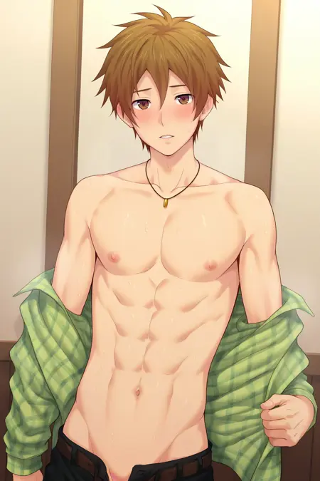 aki, 棕发, 棕眼, 发丝遮住眼睛