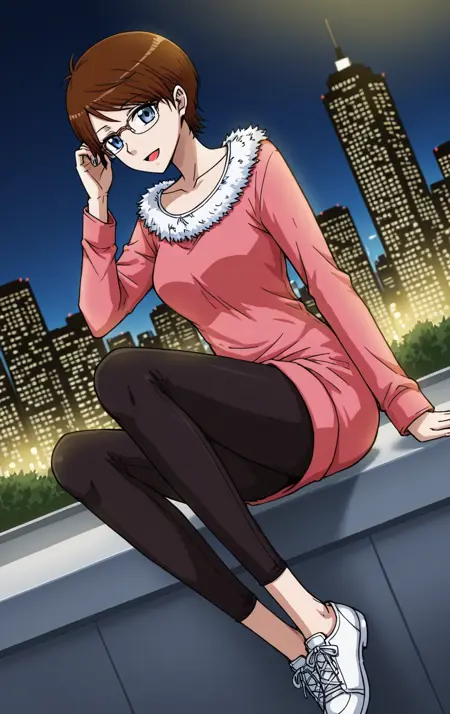 Ayou, 1소녀, 혼자, 얼음 파랑 눈, 진한 갈색 머리, 짧은 머리, 측면으로 쓸어낸 앞머리, 층층이 긴 머리, 안경,