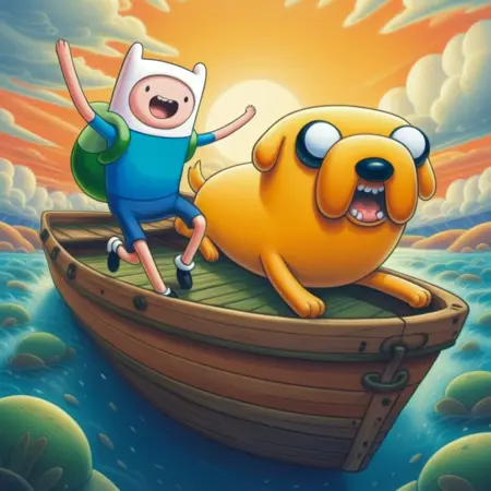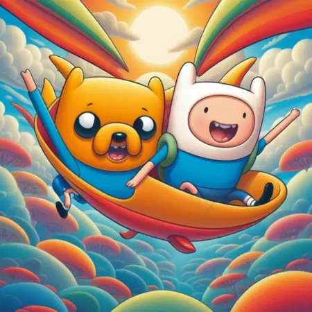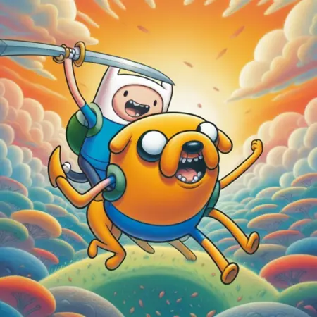 「Adventure Time」は、人間のフィンとその魔法で形を変える犬のジェイクが、ポスト・アポカリプスの「Oooの国」で繰り広げる奇妙な冒険を描いたアニメシリーズです。2人は、不思議でユーモラスな出来事に巻き込まれながら、超現実的な敵と戦い、独自のユーモアと心温まる物語を融合させます。彩り豊かなキャラクターや予想外の展開に満ちた数学的な旅です。