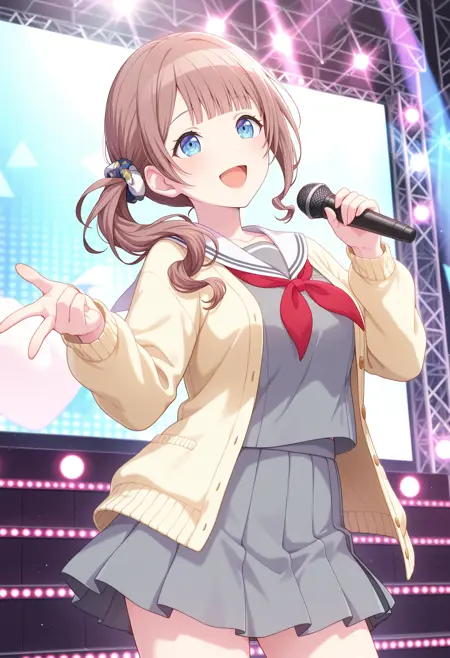 その他の衣装(ランダム)aahonami, long hair, brown hair, side ponytail, blue eyes, idol clothes