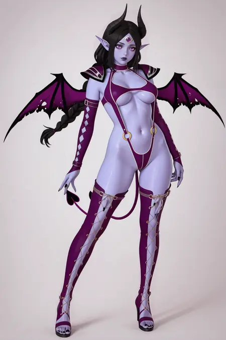 这是一个原创角色,是我其他精灵的对手。她整体效果还不错,不过我可能会在下一个版本中更换她的靴子,因为这种露趾设计有点粗糙。我也需要修剪一下标签,我保留了所有列出的标签,但你很可能可以去掉很多,仍能获得正确的效果。