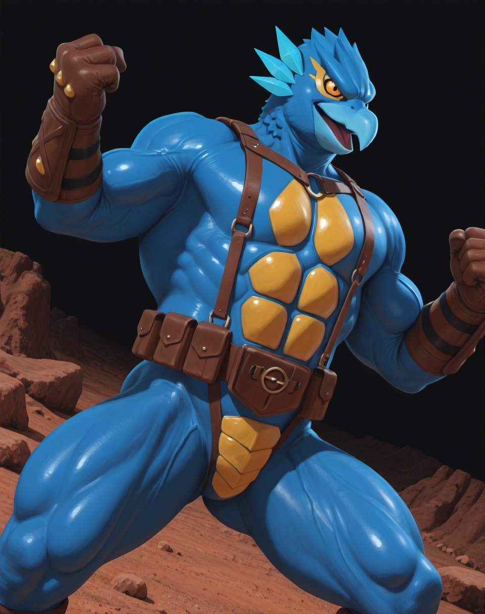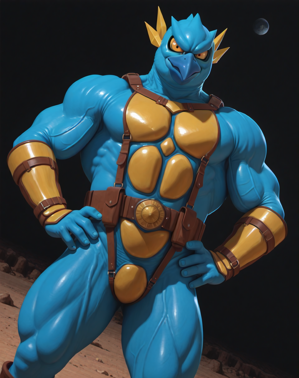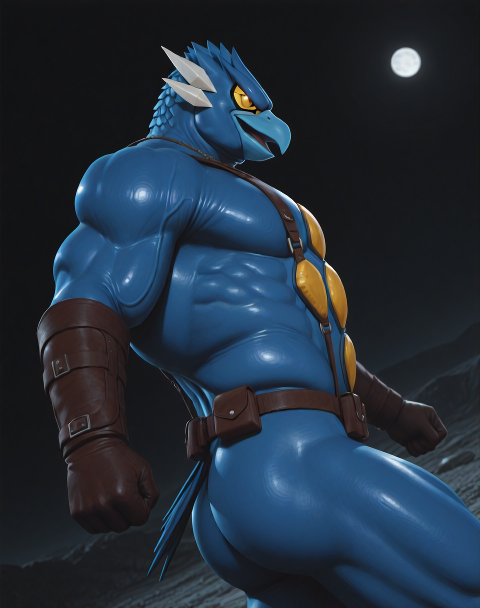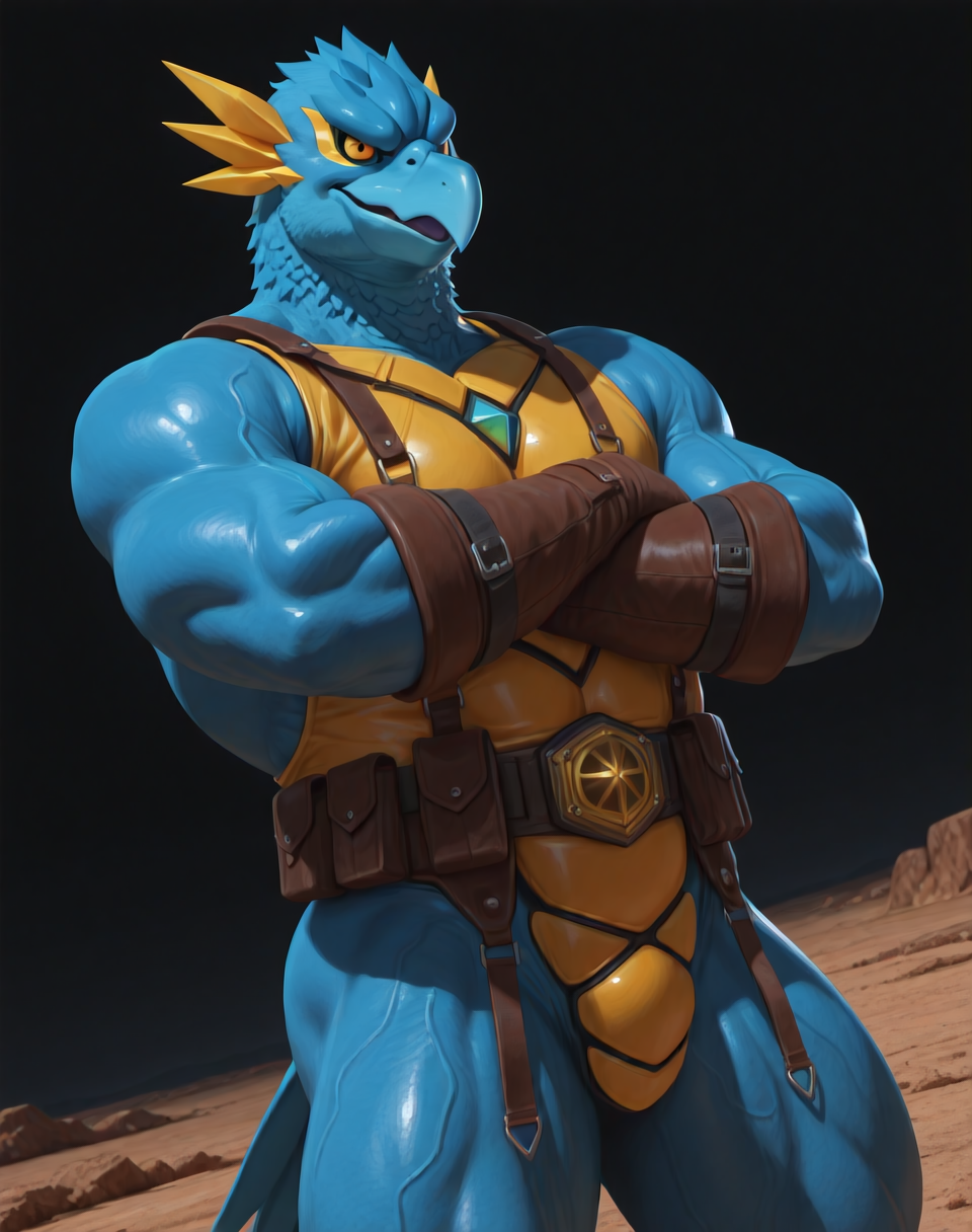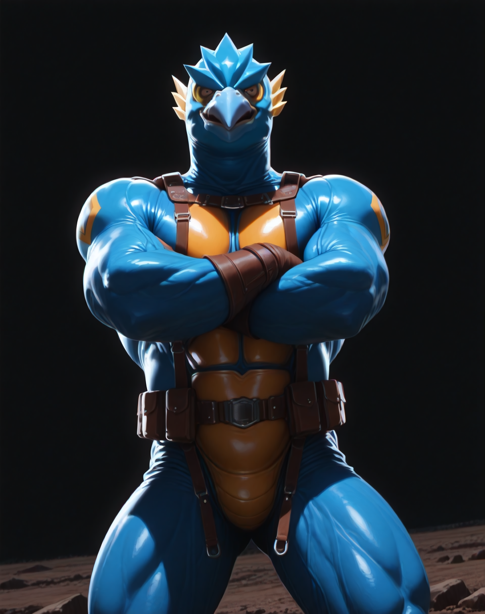 このLoRA向けのプロンプトは次の通りです:(Dreadfeather, muscular, bird, )