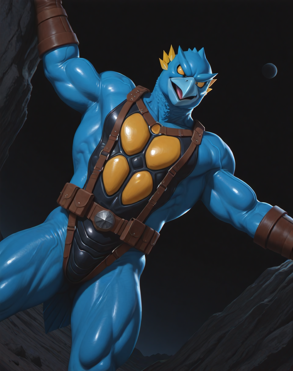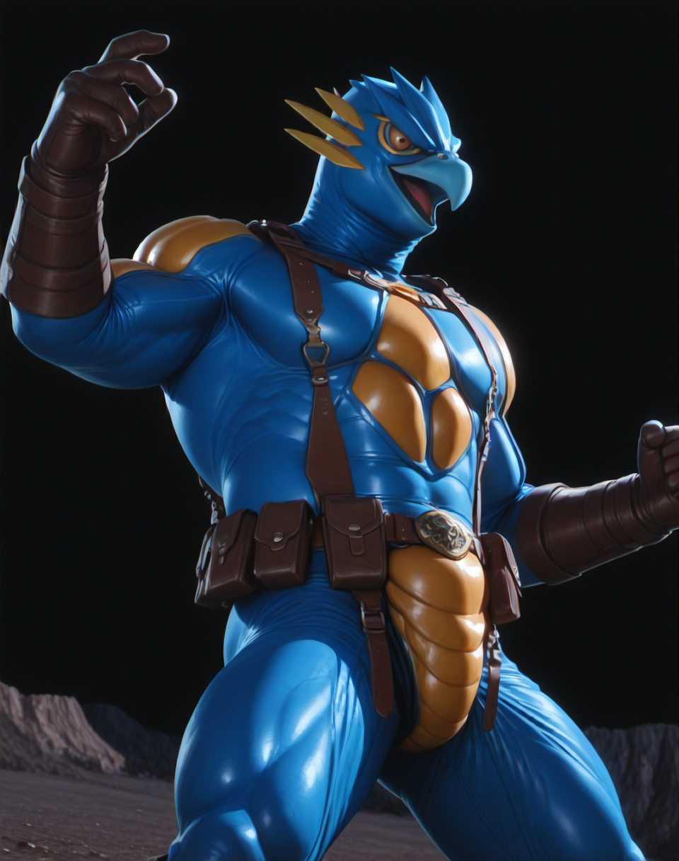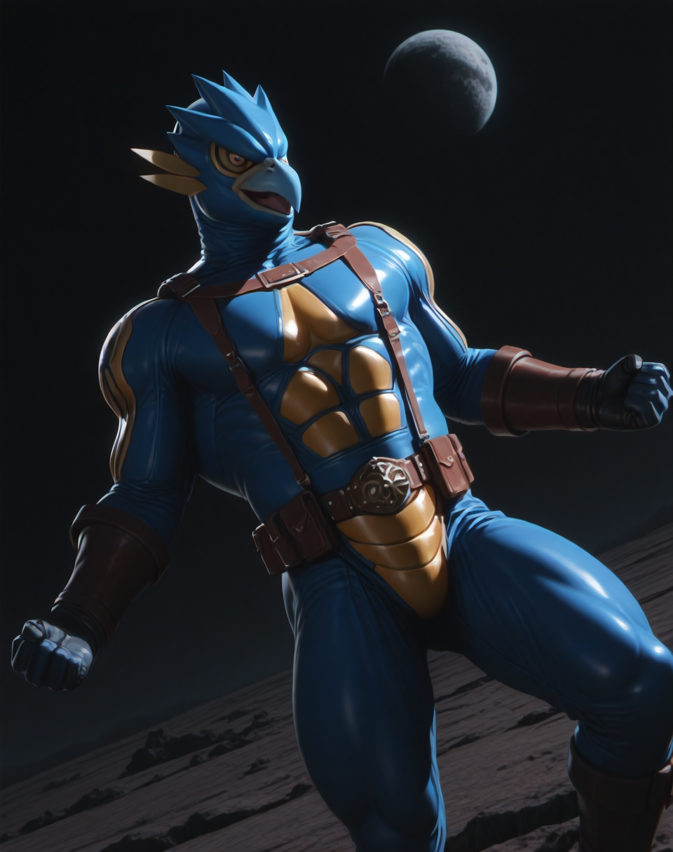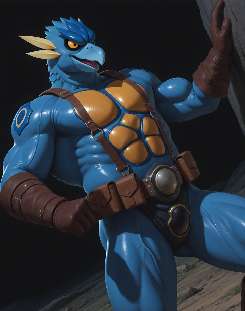 このLoRA向けのプロンプトは次の通りです:(Dreadfeather, muscular, bird, )