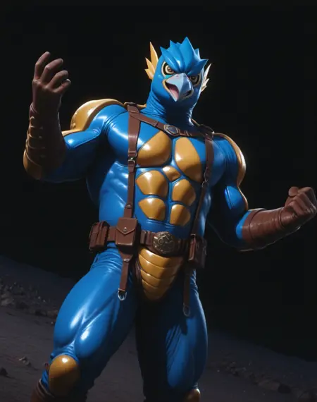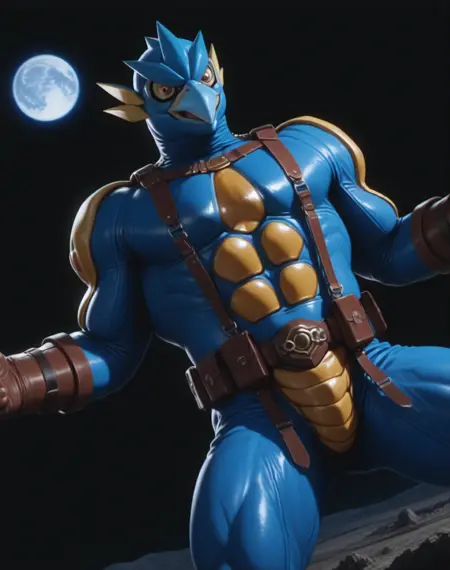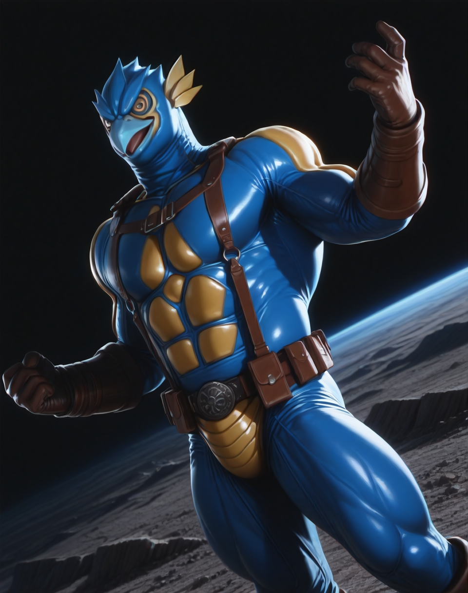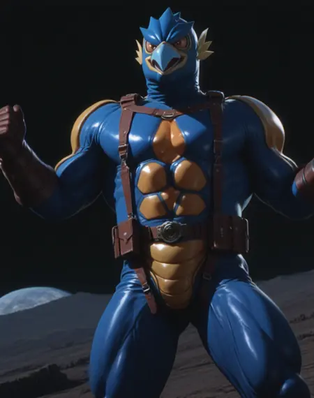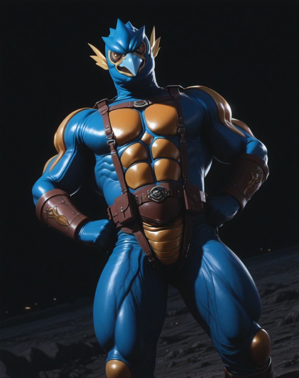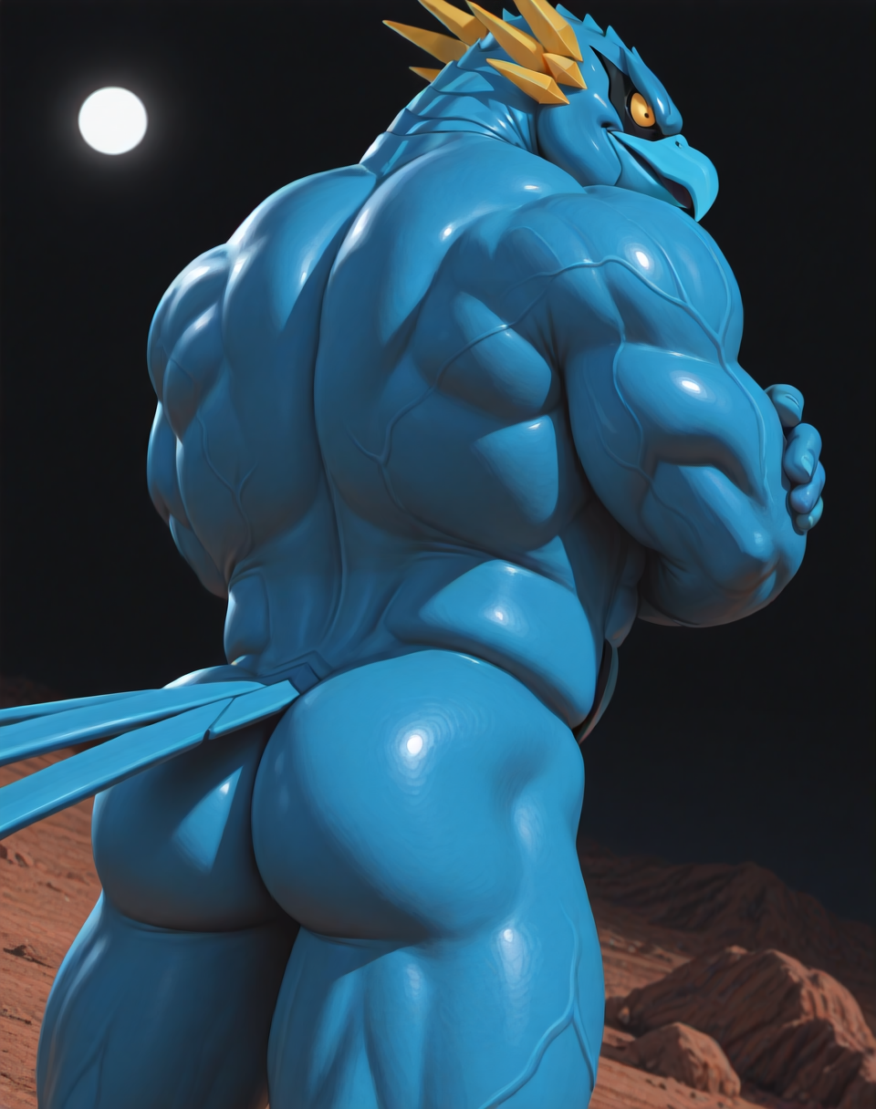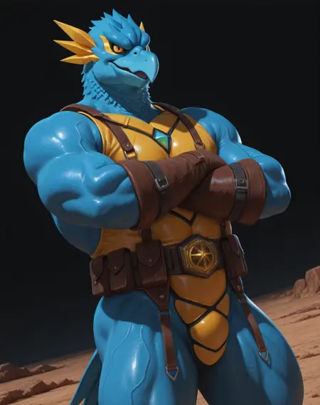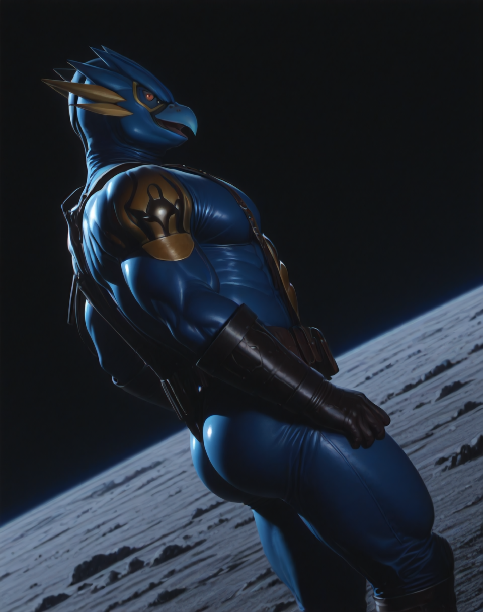 このLoRA向けのプロンプトは次の通りです:(Dreadfeather, muscular, bird, )