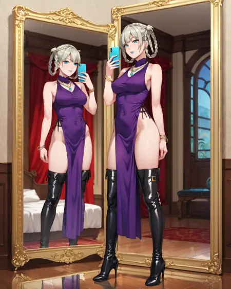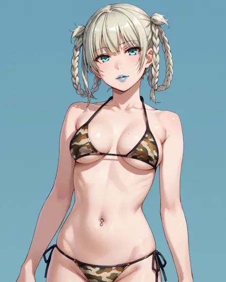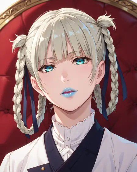 Kirari Momobami, kirari, platinum blond hair, blue eyes, blue lipstick, braided hair rings, braid, hair rings, lipstick, 1girl, solo