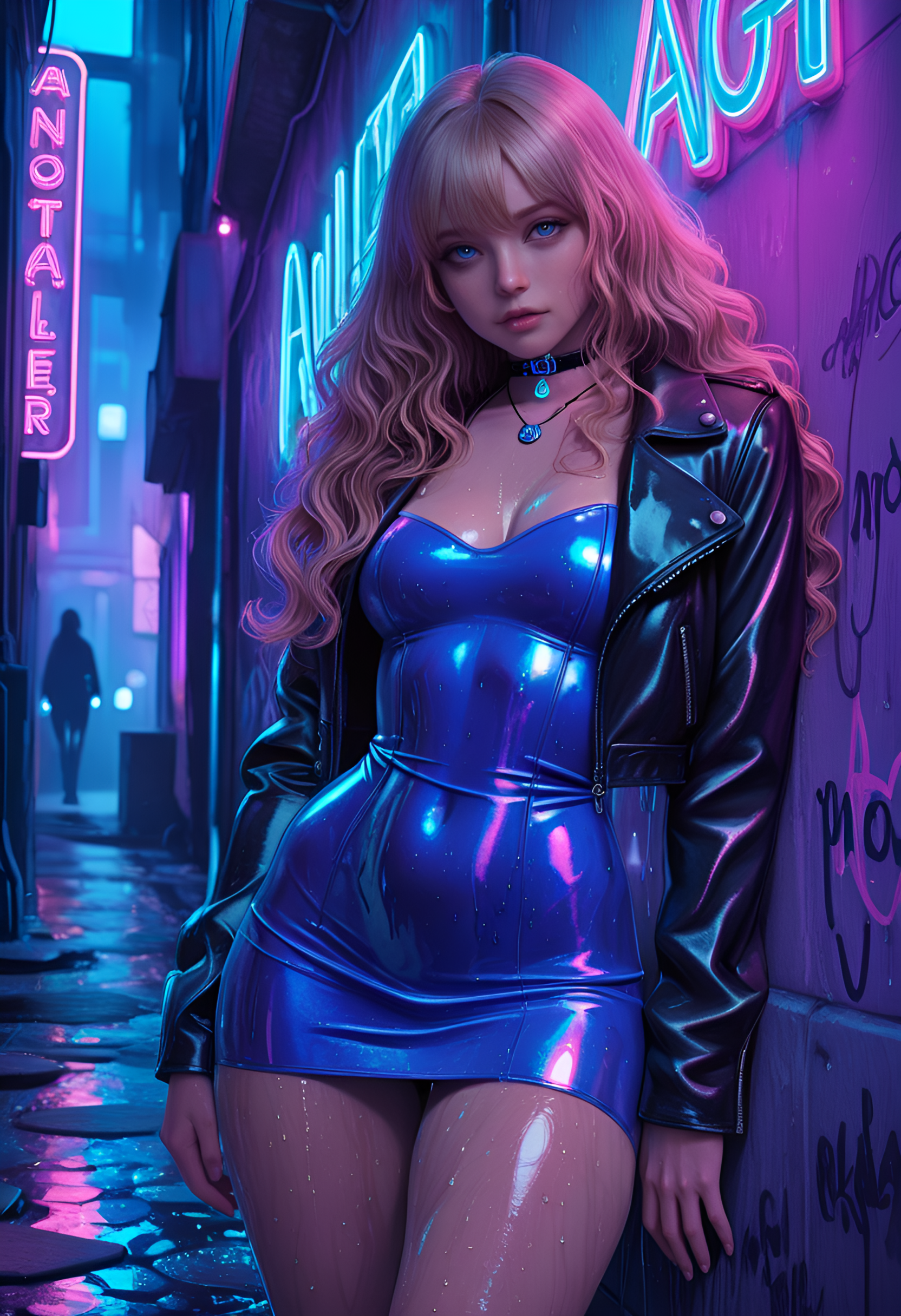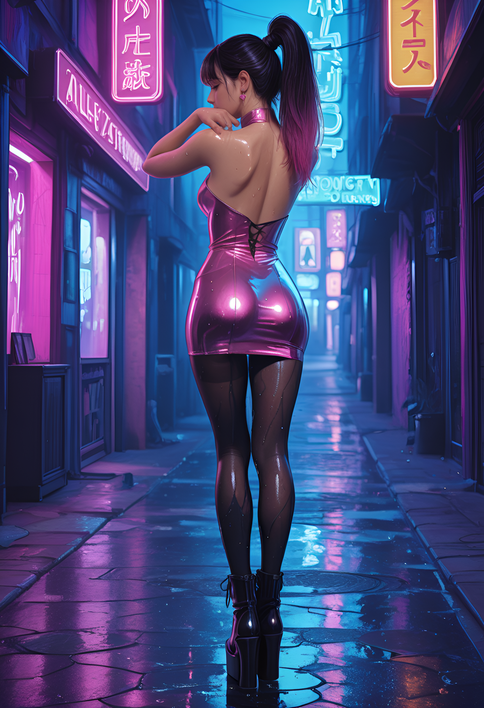 SDXLワークフロー向けに設計され、このパックは狭い都市の通り、輝く看板、濡れたアスファルトの反射、そしてパープル、ブルー、マゼンタのカラーゲルで照らされたフィット感のあるナイトライフファッションに焦点を当てています。カバースタイルのポートレート、サイバー風ストリートファッション、ムードのあるキャラクタースケッチに最適です。