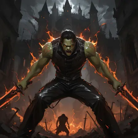 这表明该LoRA适用于黑暗奇幻/动作插画风格,可能针对以下内容进行优化: