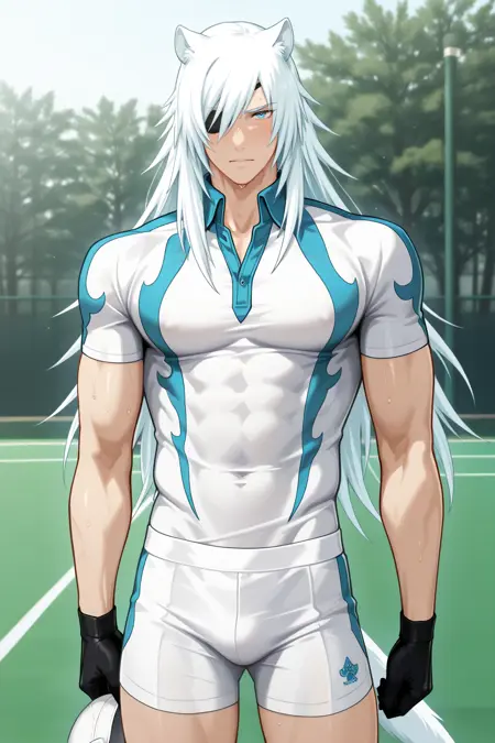 rai, 白发, 动物耳朵, 蓝眼睛, 眼罩, 长发, 尾巴