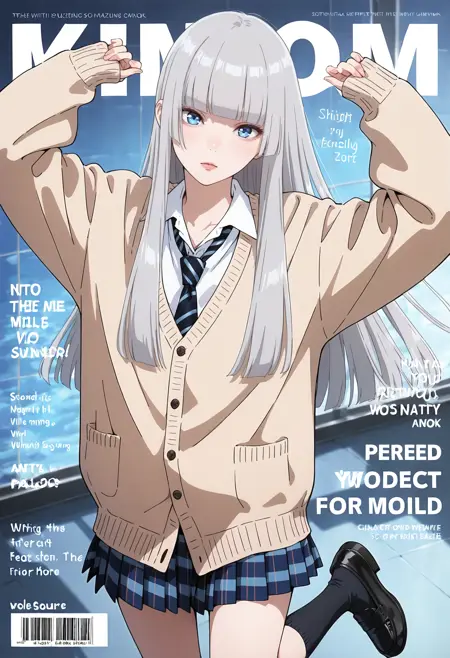 skirt,necktie,socks,black footwear,pleated skirt,cardigan,school uniform,shoes,shirt,black socks,striped necktie,blue skirt,collared shirt,white shirt,loafers,plaid,plaid skirt,long sleeves,miniskirt,kneehighs,sleeves past wrists,striped,diagonal-striped necktie,blue necktie,black necktie,straight hair,wing collar,buttons