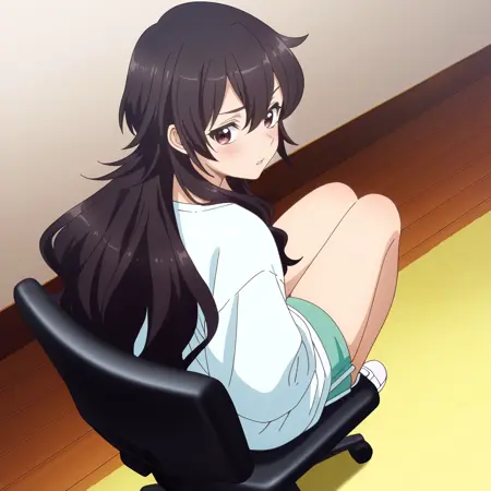 ATNTakao, long hair, black hair, bangs, hair between eyes, messy hair, brown eyes, eyebrows visible through hair,