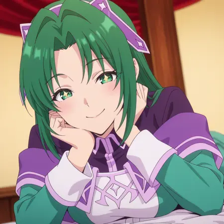 케이플릿, 긴 소매, 보라색 bows, 리본, 보라색 리본, bow, 머리 장식, 헤어밴드, 보라색 케이플릿, 드레스, 녹색 드레스,