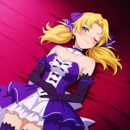 JamiePurpleDress、ジュエリー、パープルのリボン、イヤリング、リボン、リボン、パープルのリボン、肩出し、髪のリボン、髪のリボン、チョーカー、星型のイヤリング、取り外し可能カラー、パープルのドレス、ドレス、パープルのネクタイ、ハイソックス、手袋、肘まで手袋、ストラップレス、