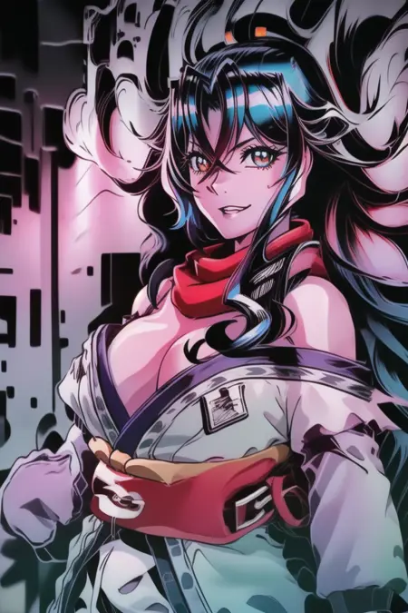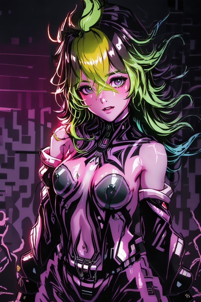 추천 사항: (neon noir style:1.2),생동감 있는 색상,미래적 디자인,어두운 부분과 밝은 부분의 대비,스타일리시한 캐릭터,기하학적 패턴,높은 디테일,부드러운 그라데이션