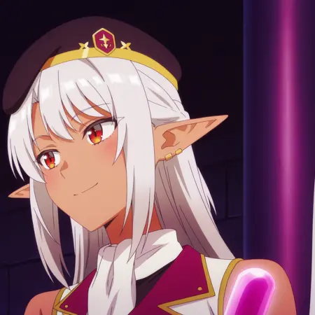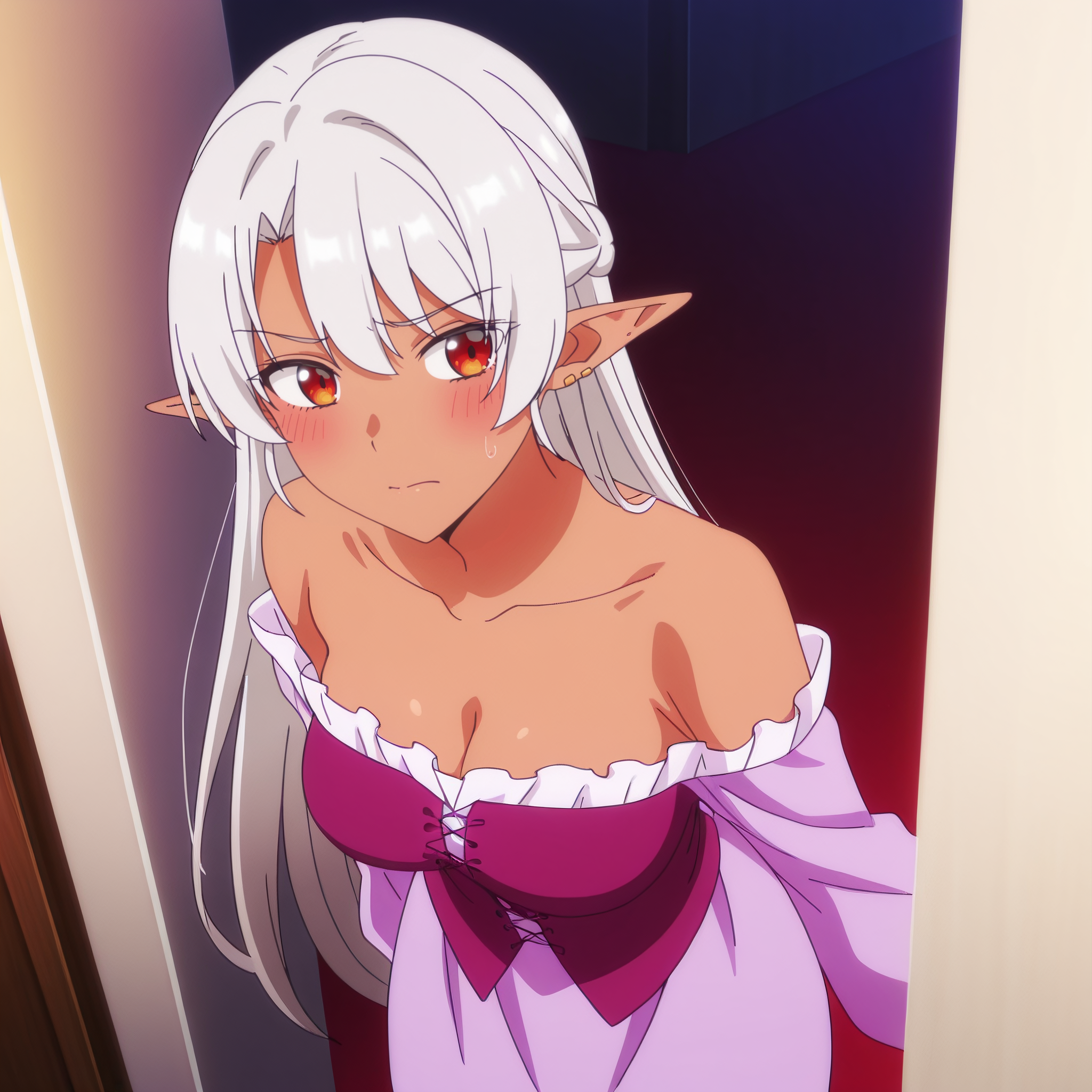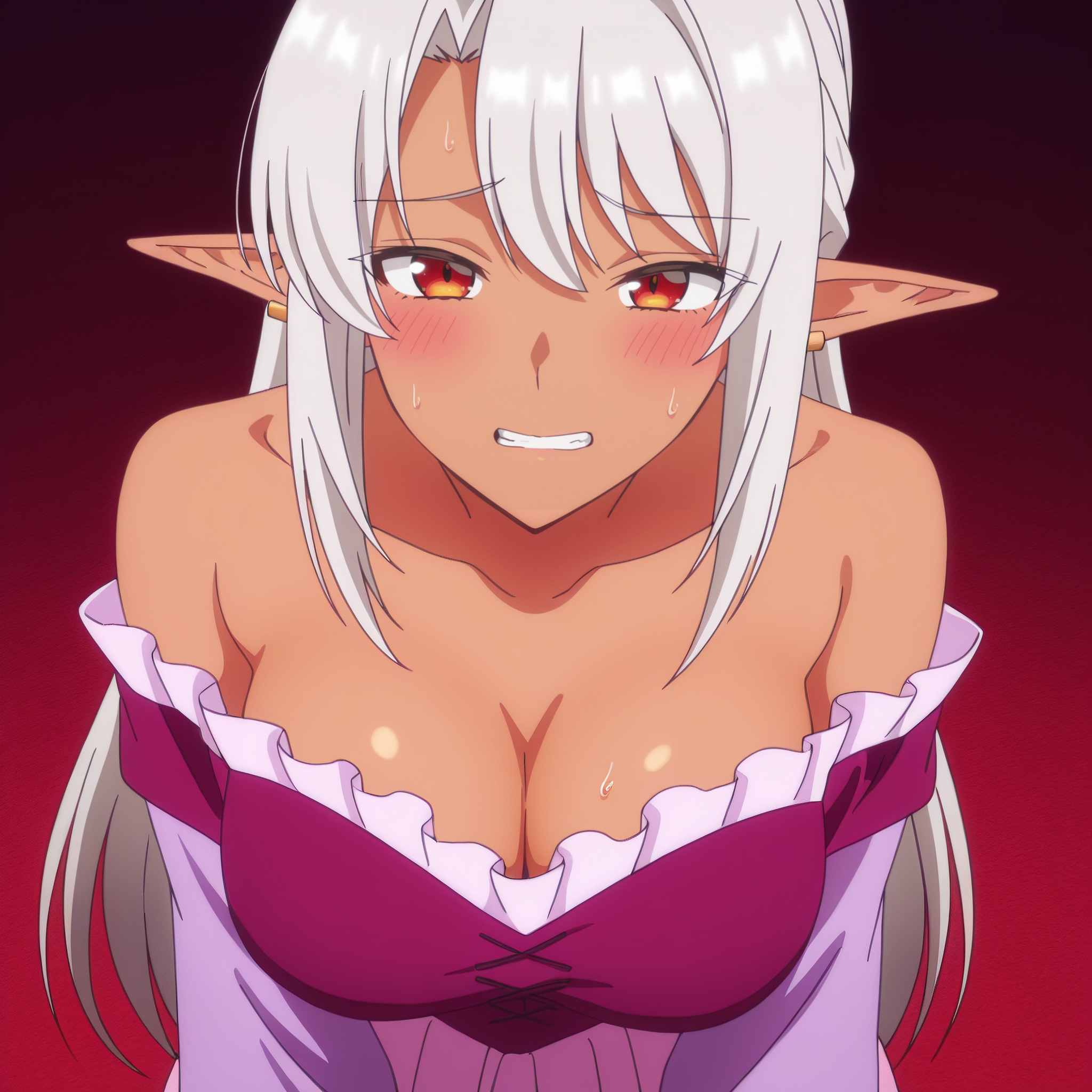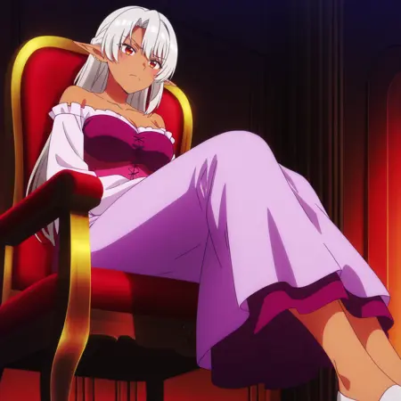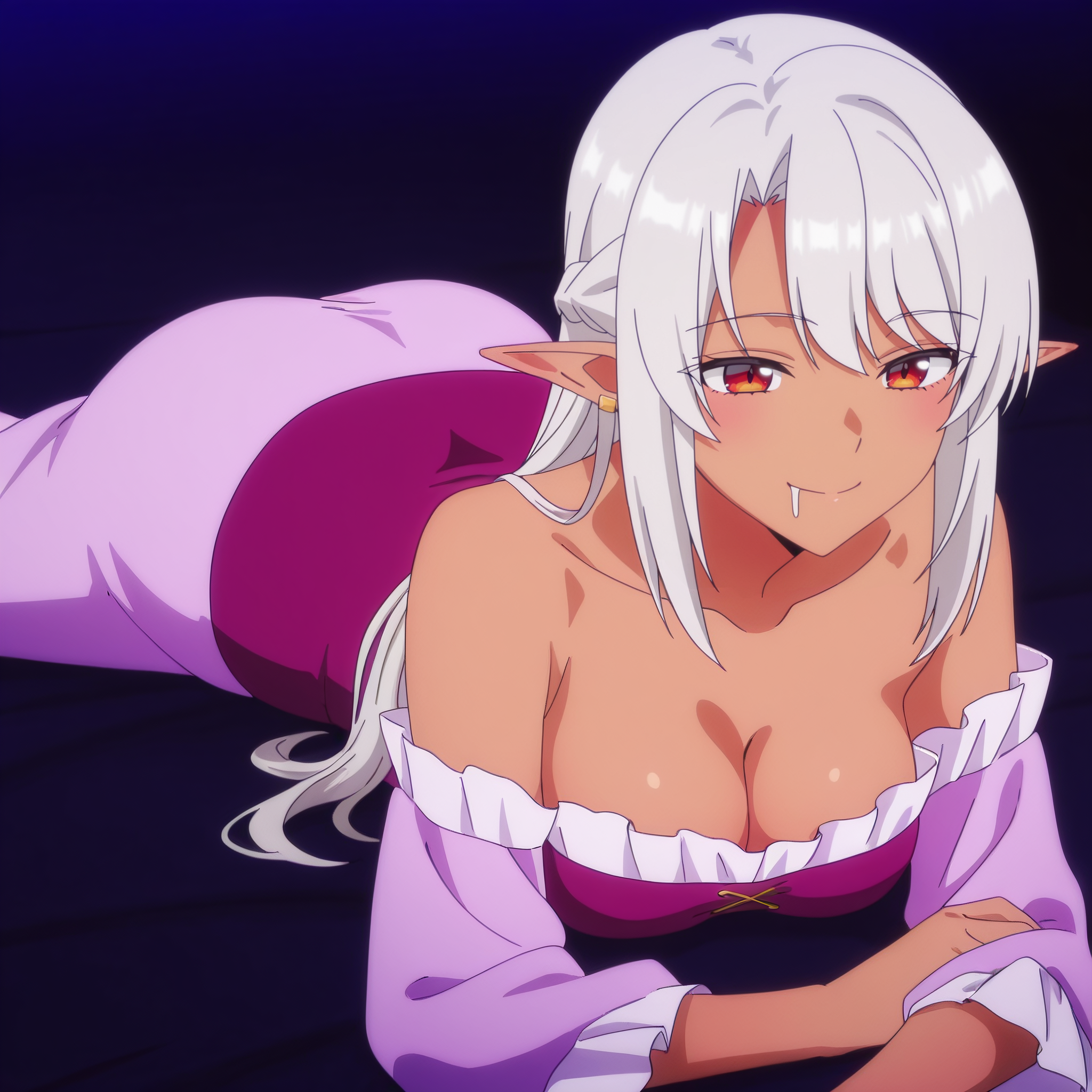 ASilk,精灵,黑暗精灵,深色皮肤,深色皮肤女性,长发,尖耳朵,银发,长尖耳,刘海,红眼睛,