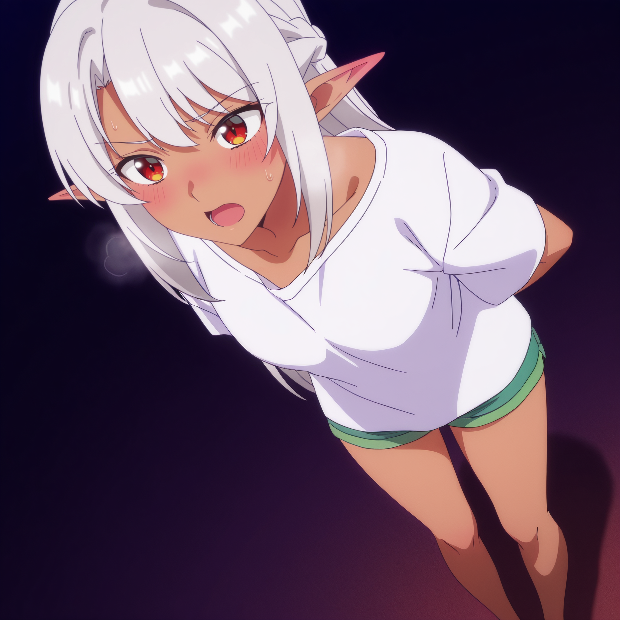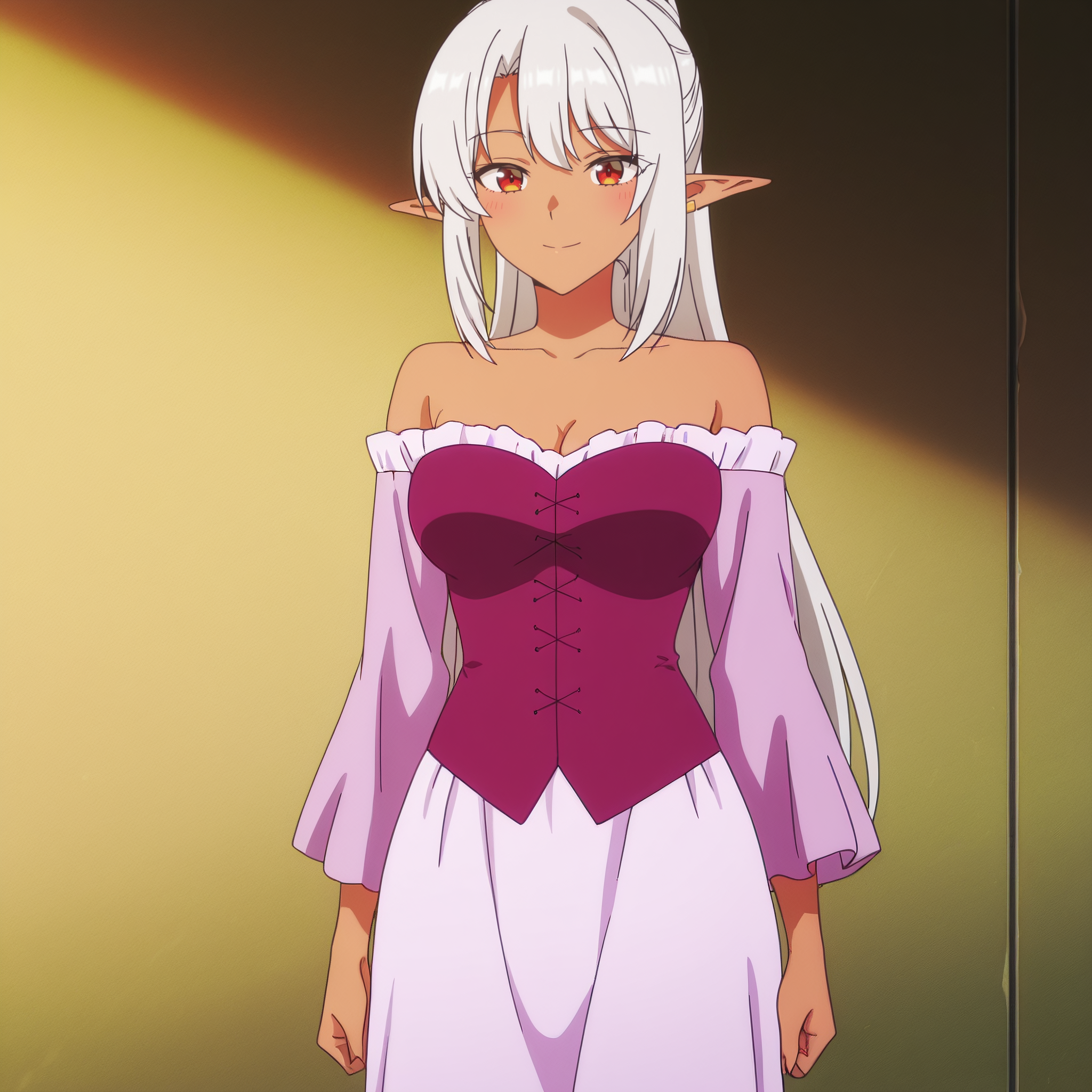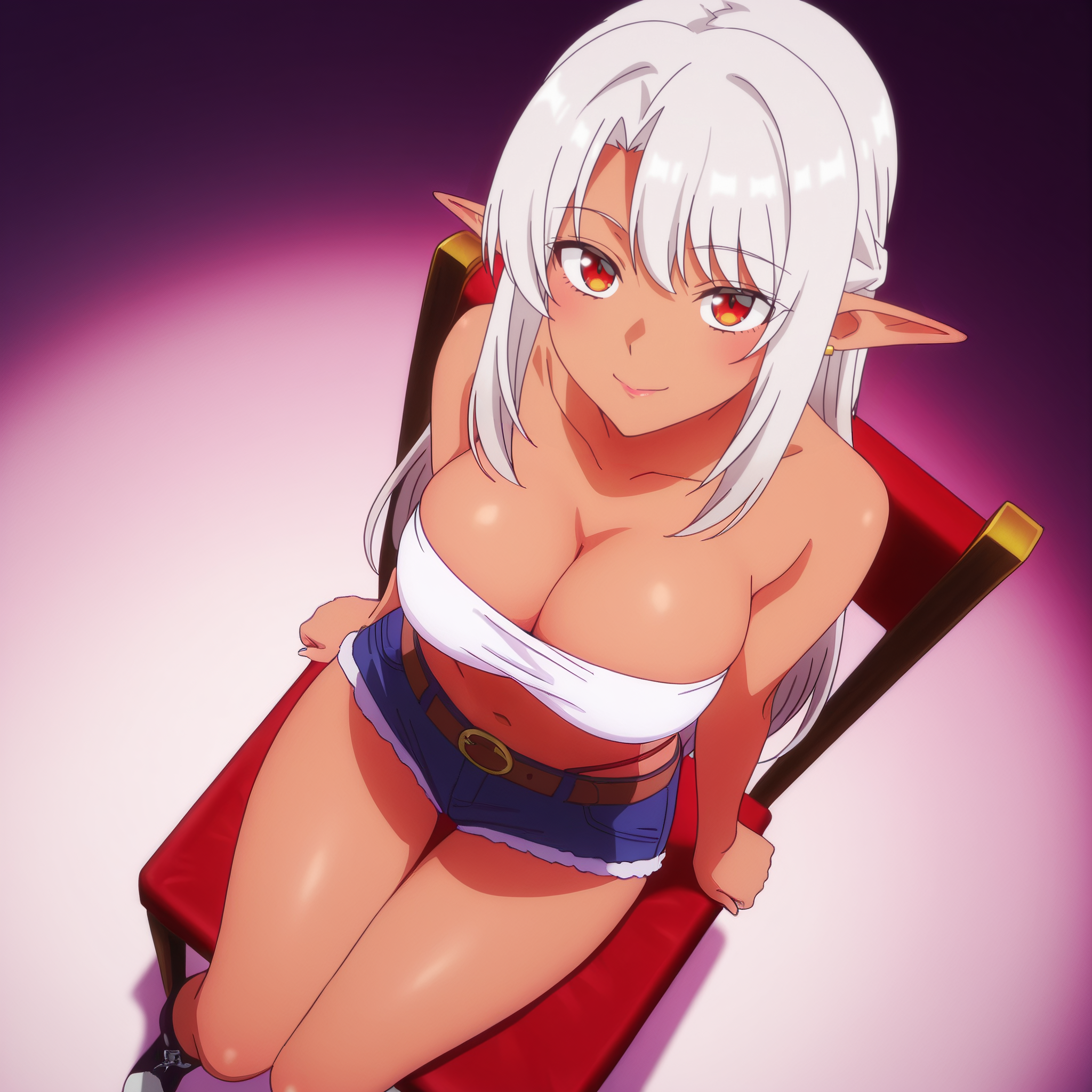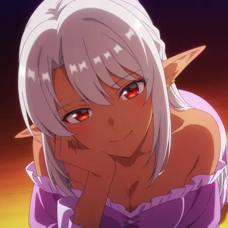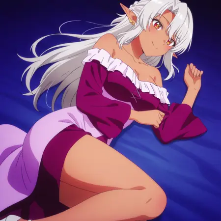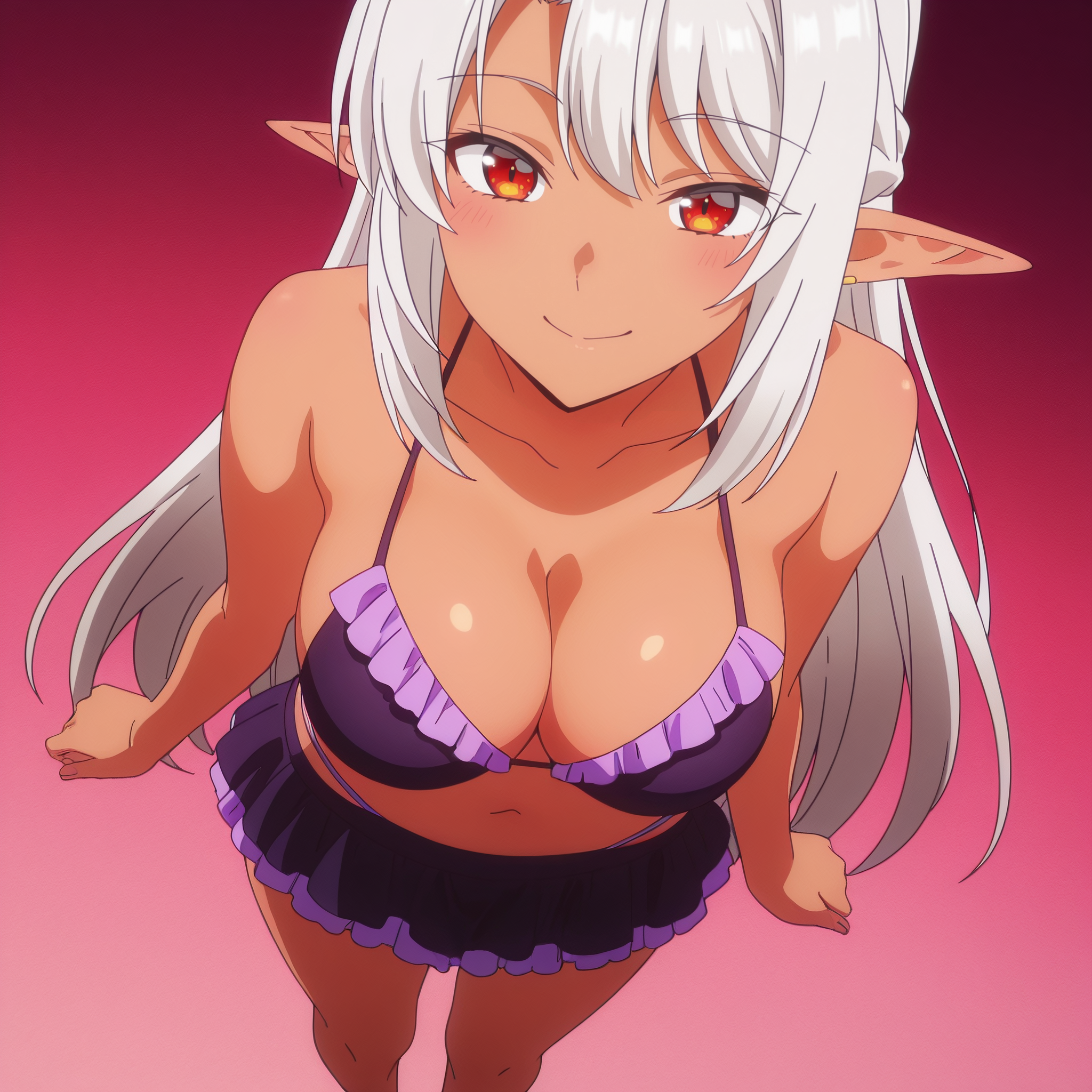 ASilk,精灵,黑暗精灵,深色皮肤,深色皮肤女性,长发,尖耳朵,银发,长尖耳,刘海,红眼睛,