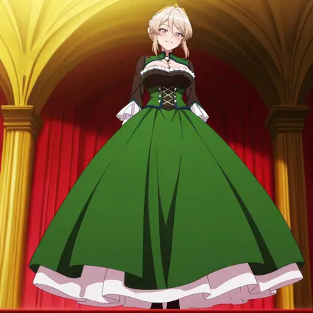 dress, cleavage, long sleeves, jewelry, skirt, frills, gem, necklace,