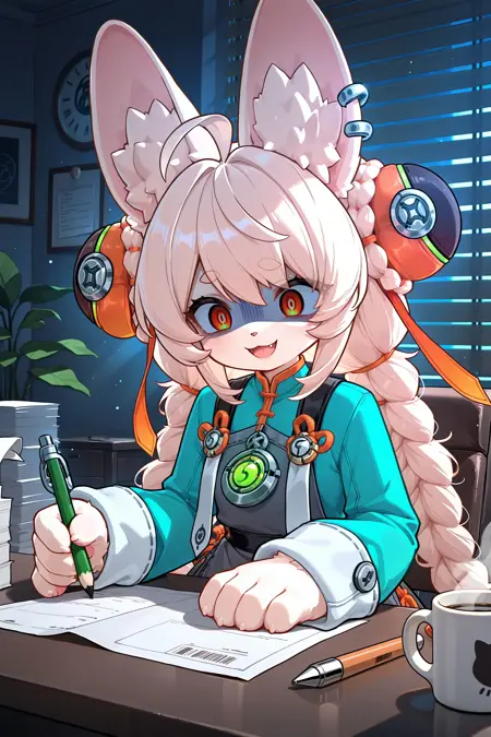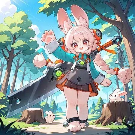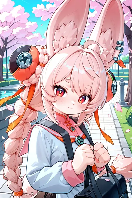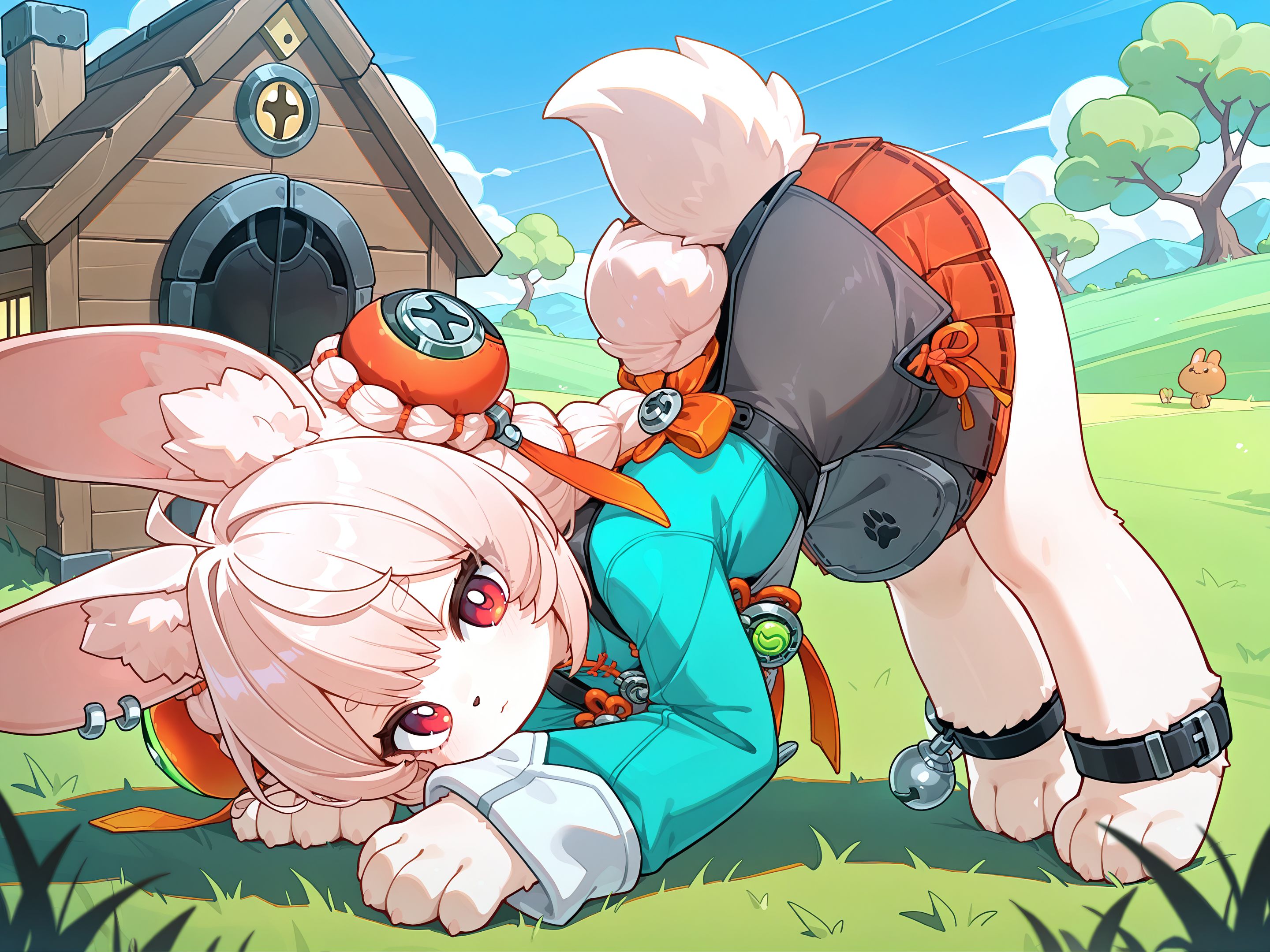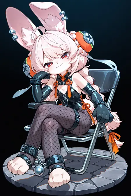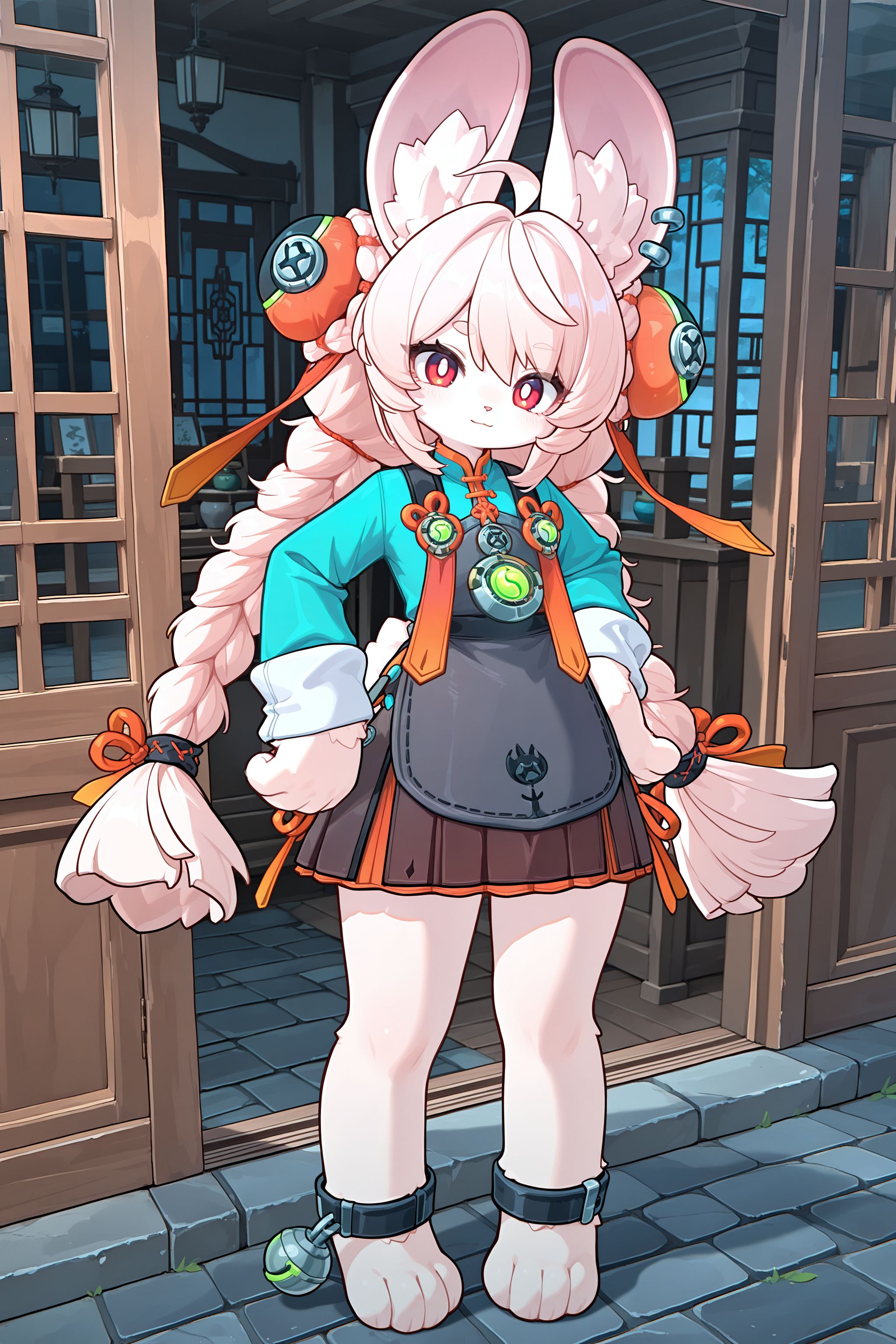 触发词: zzzzao, furry female, 双马尾, 耳钉, 双发髻, 发髻罩, 橙色丝带, 兔子尾巴,