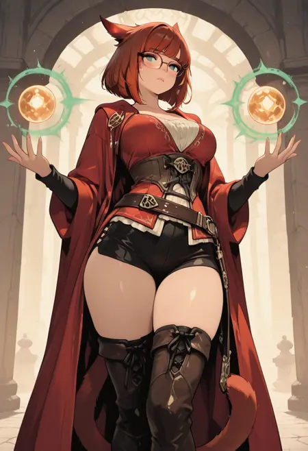리오라는 붉은 주황색 머리카락을 소프트한 프렌치 밥 스타일로 기른, 밝고 외향적인 미코테다. 녹색 눈과 검은 테의 안경을 착용하며, 두툼한 허벅지, 둥근 골반, 부드럽고 풍만한 곡선으로 따뜻하고 친근한 인상을 준다. 하지만 주목을 받을 때마다 드러나는 수줍은 성향이 그 인상을 균형 있게 만든다.