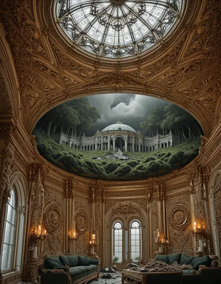 따라서 같은 방, 예를 들어 장식된 바로크식 사무실 안에서도 텐트, 쌓인 자동차 및 기타 물건들을 볼 수 있습니다. 물론 저는 제 "15개의 효과"를 추가했기 때문입니다.