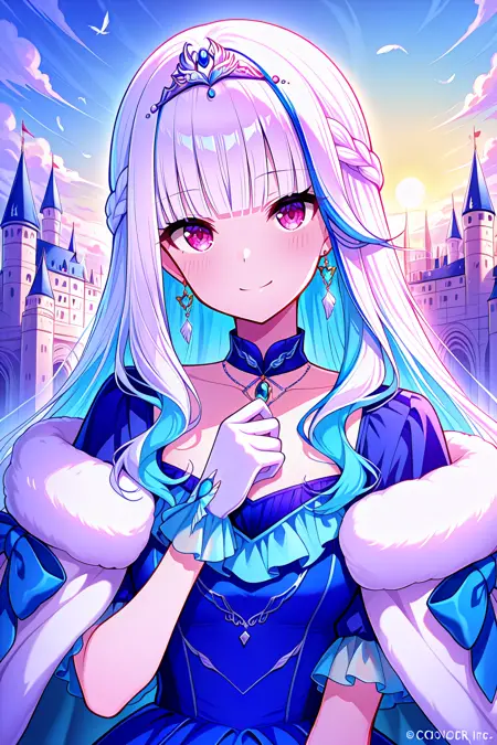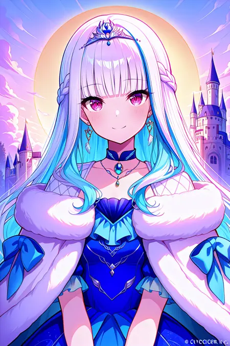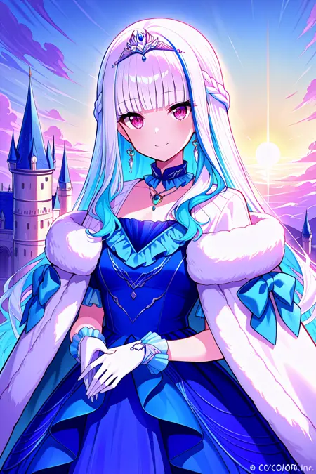 | Trained Words | lize helesta, lize3rd, alternate hairstyle, aqua hair, blue bow, colored inner hair, pink eyes, blue hair, blunt bangs, braid, gradient hair, half up braid, long hair, multicolored hair, purple eyes, sidelocks, two-tone hair, very long hair, white hair, alternate costume, blue dress, bow, cape, capelet, choker, cloak, dress, white gloves, feathers, frilled collar, frilled dress, frilled gloves, frilled sleeves, frills, fur cape, fur trim, fur-trimmed cape, fur-trimmed capelet, fur-trimmed cloak, fur-trimmed coat, gloves, long dress, short sleeves, aqua gemstone, blue choker, crown braid, earrings, gem, jewelry, necklace, tiara, princess, virtual youtuber,Copied! |
