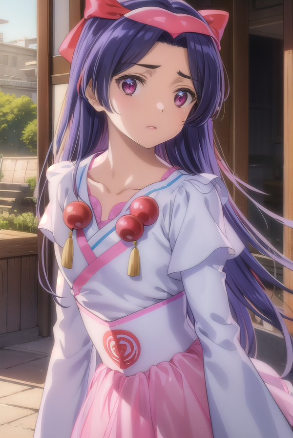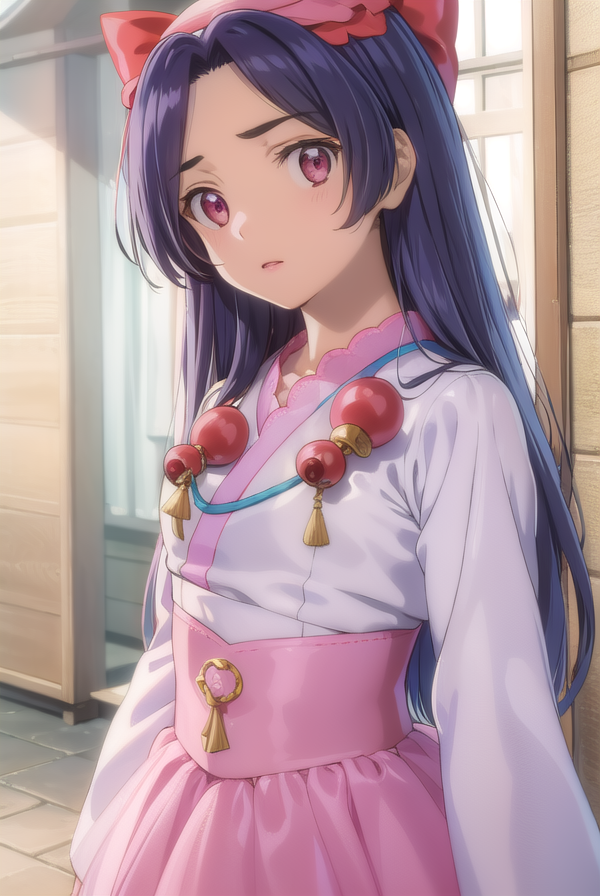 리본, 보석, 드레스, 흰 드레스, 프릴, 긴 소매, 치마, 분홍 치마,
