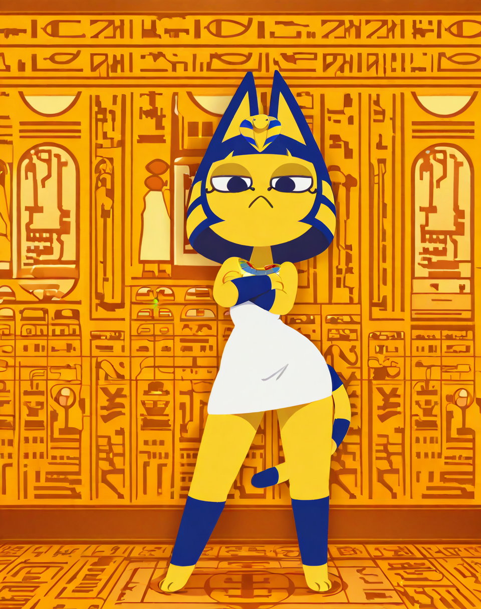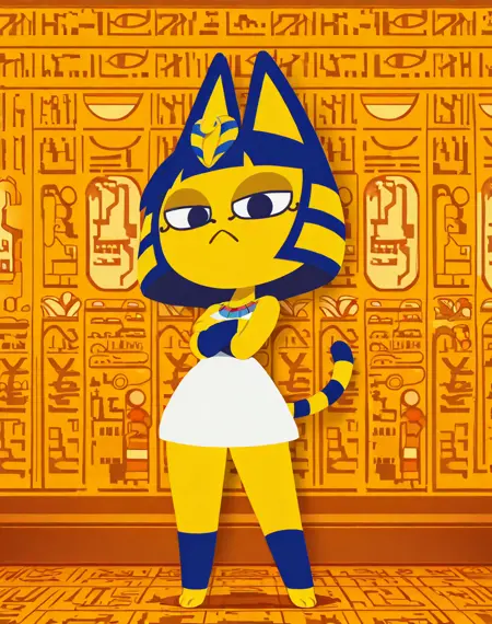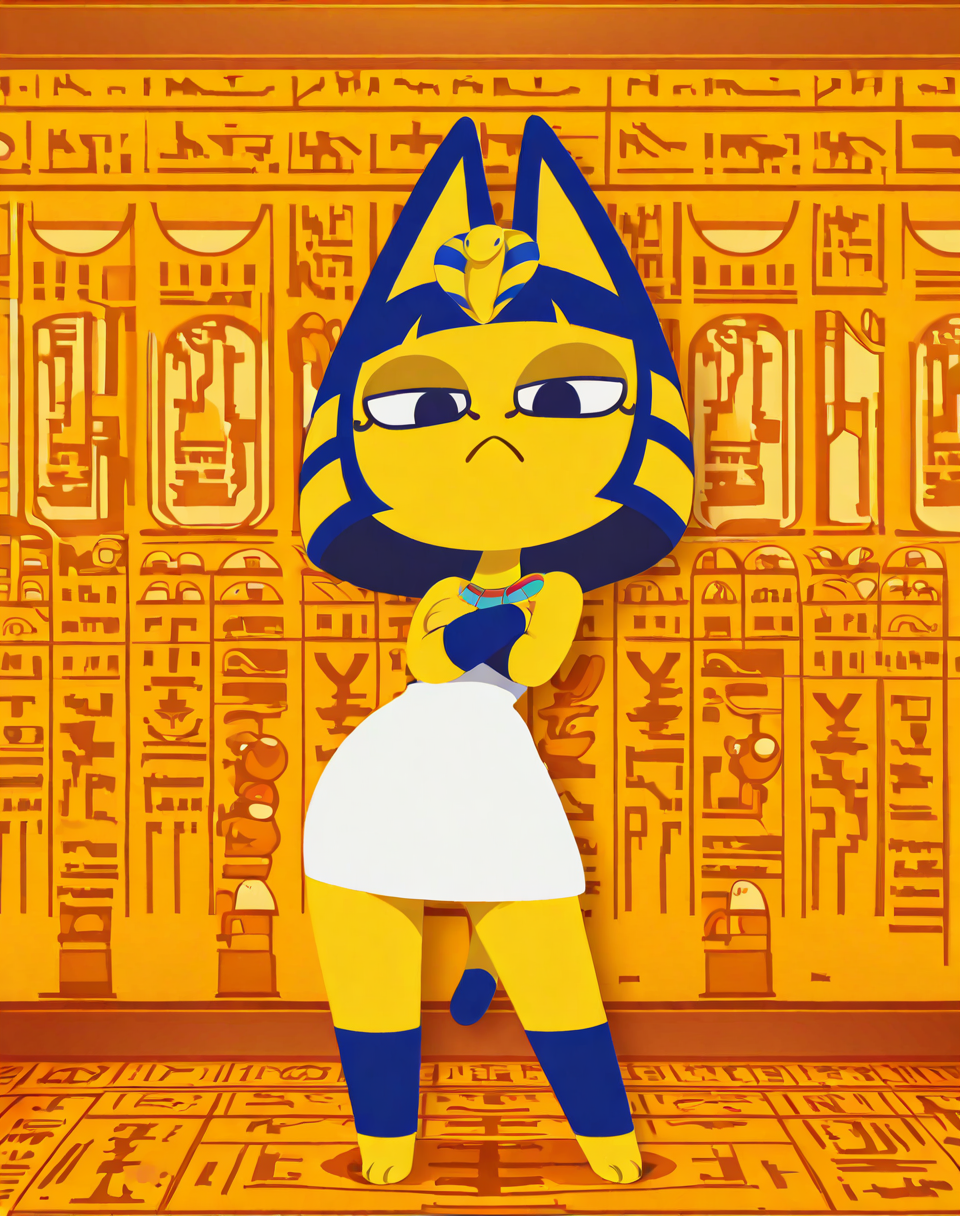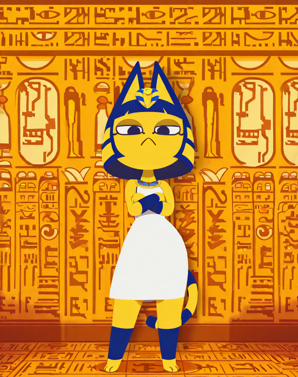 | 학습된 단어 | AnkhaZone, cat ears, cat tail, no nose, blue eyes, :<, Egyptian-like navy eyeliner, short hair, blunt bangs, bob cut, snake hair ornament, blue hair, multicolor hair, striped tail, yellow fur, egyptian, furry female, 1girl, ancient egyptian background, 2d, flat color, no outlines, no lineart복사됨! |