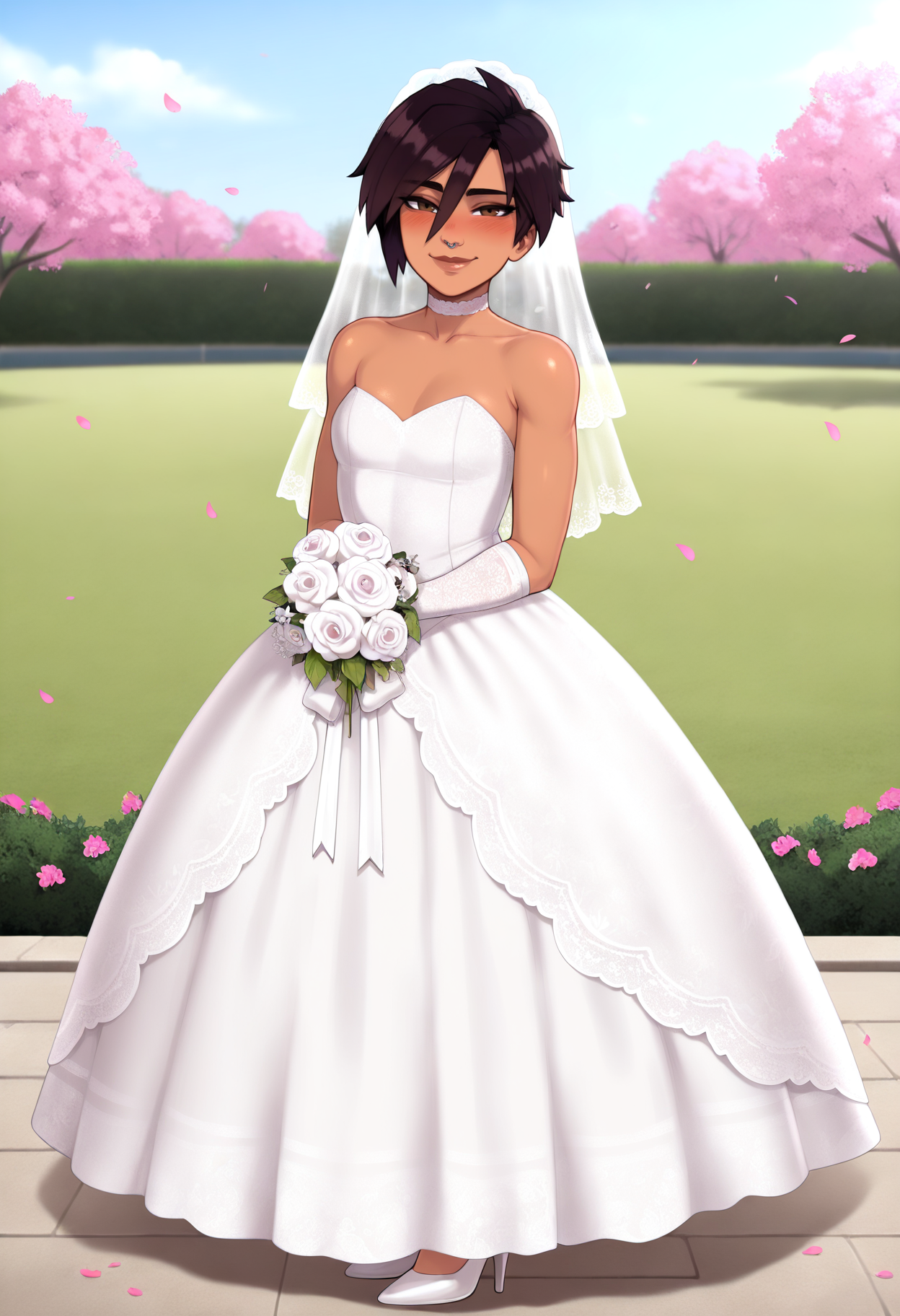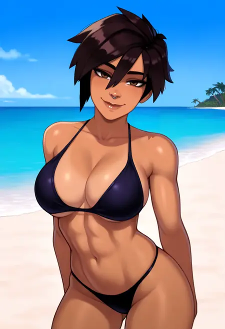 基础提示词:1girl, invisigal, 短发, 棕色眼睛, 头发遮住眼睛, 深棕色头发, 深色皮肤, 嘴唇, 鼻环, 假小子