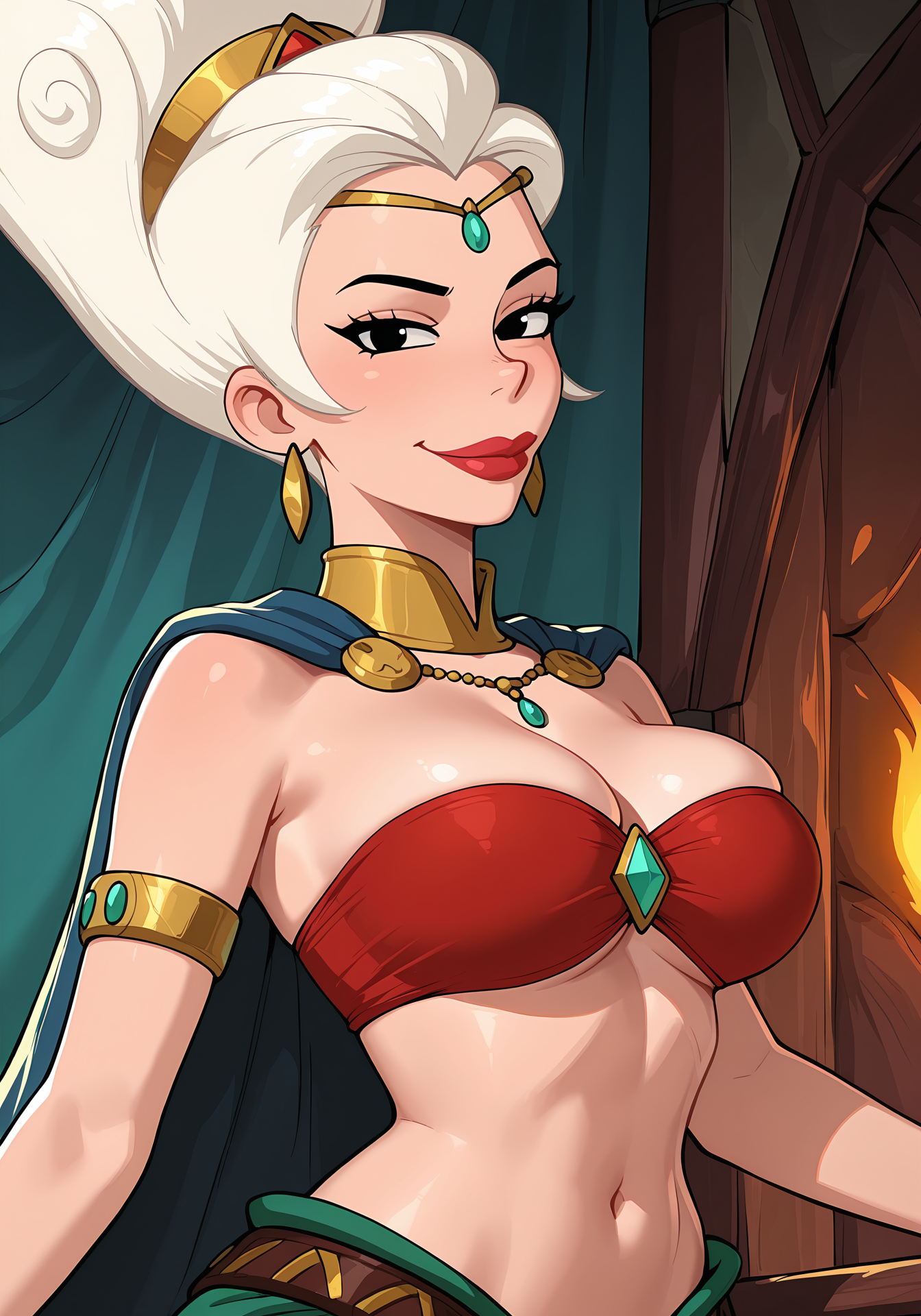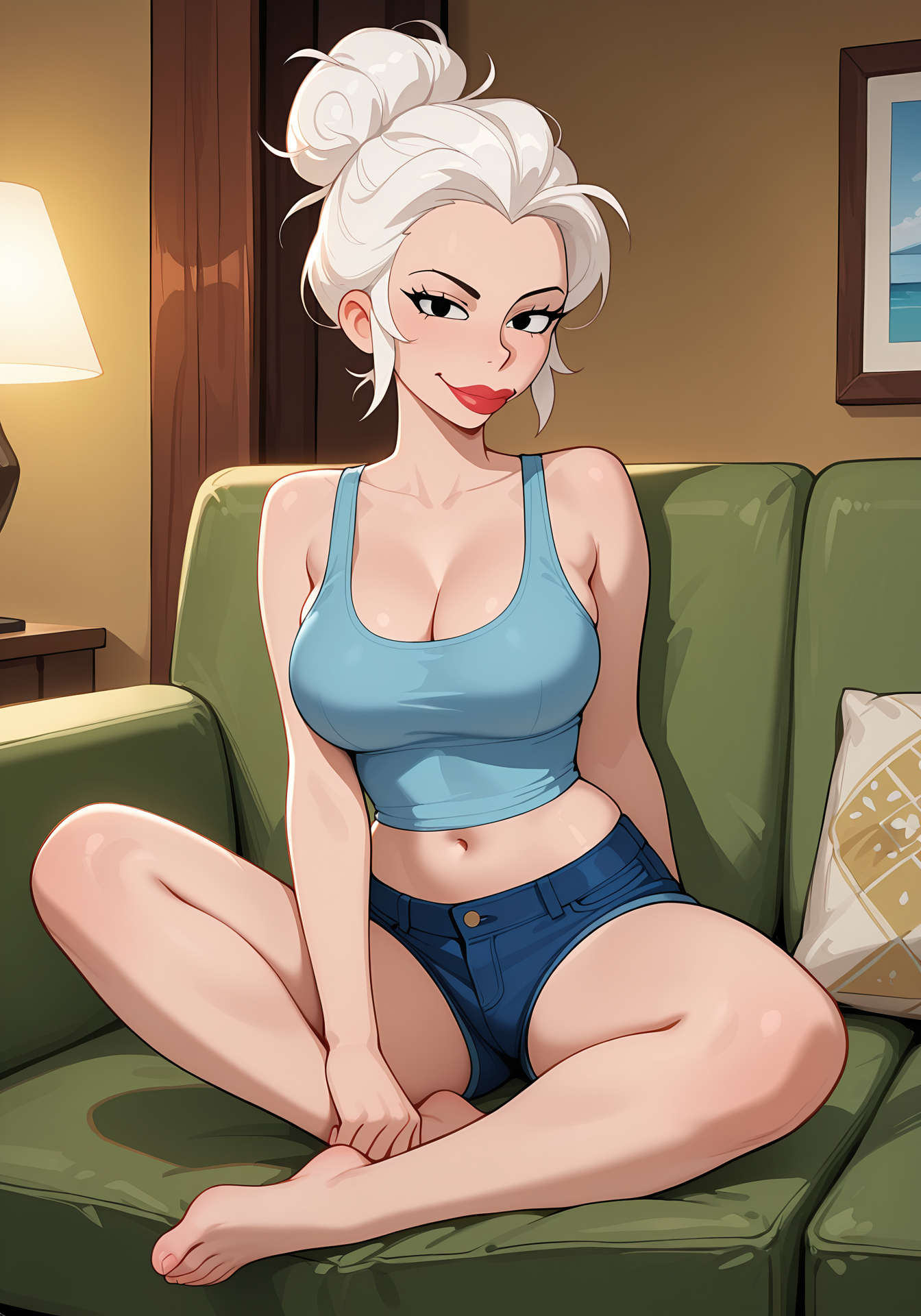 她有一千套服装,所以只需描述你希望她穿什么。没有默认装扮,但应保持灵活。可参考示例图片获取一些灵感。