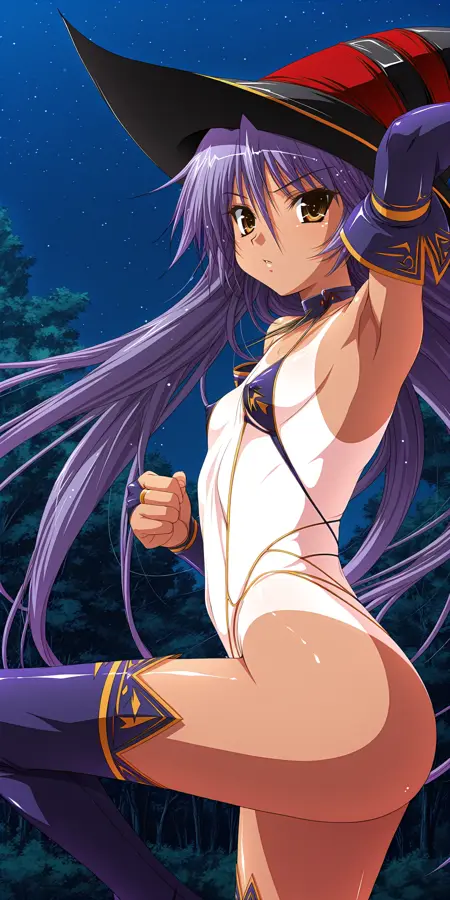 -メイン衣装: kobayakawa-Main、太ももハイソックス、太ももブーツ、ブーツ、肘グローブ、乳首カバー、ワンピース水着、魔女帽、ブライダルガントレット、ワンピースタン、スリングショット水着、