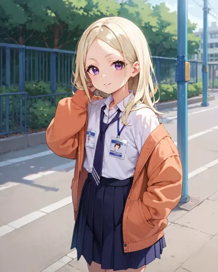 Runa Yomozuki, runa, light blonde hair, purple eyes, flat-chested, 1girl, solo