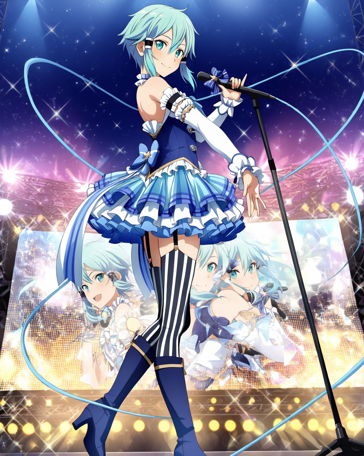 Sinon_Alicization, 1girl, solo, 파란 눈, 파란 머리, 긴 덩어리가 있는 짧은 머리,