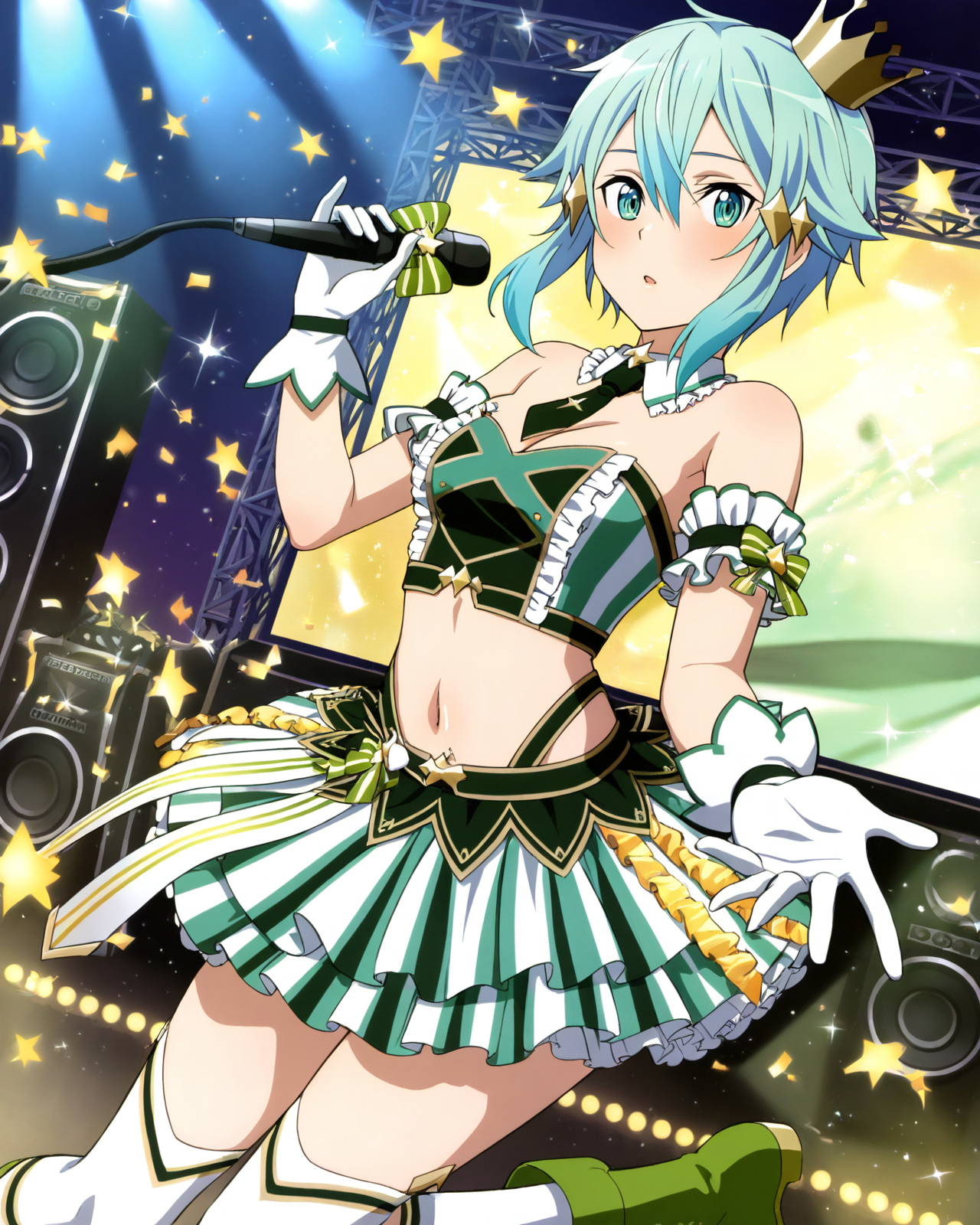셔츠, 긴 소매, 재킷, 열린 옷, 복부, 배, 어깨 노출, 열린 재킷, 크롭탑, 짧은 반바지, 파란 셔츠, 파란 재킷, 파란 반바지, 초록 반바지, 아쿠아 반바지, 어깨 노출, 속옷, 소매 없음, 브라, 맨발