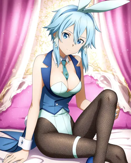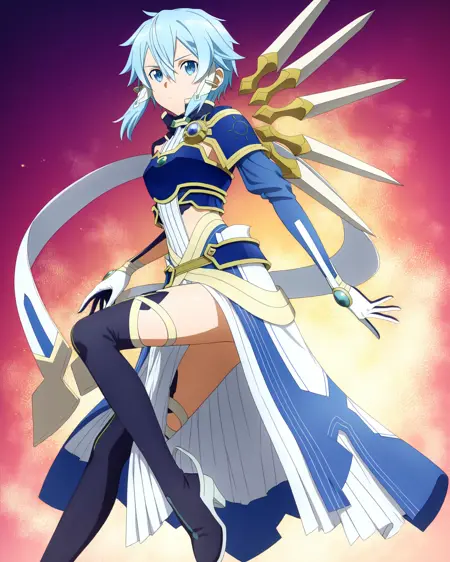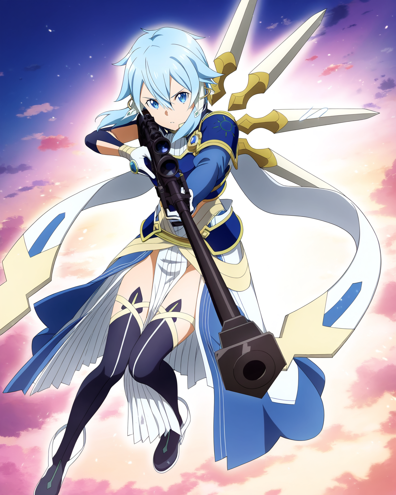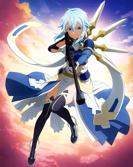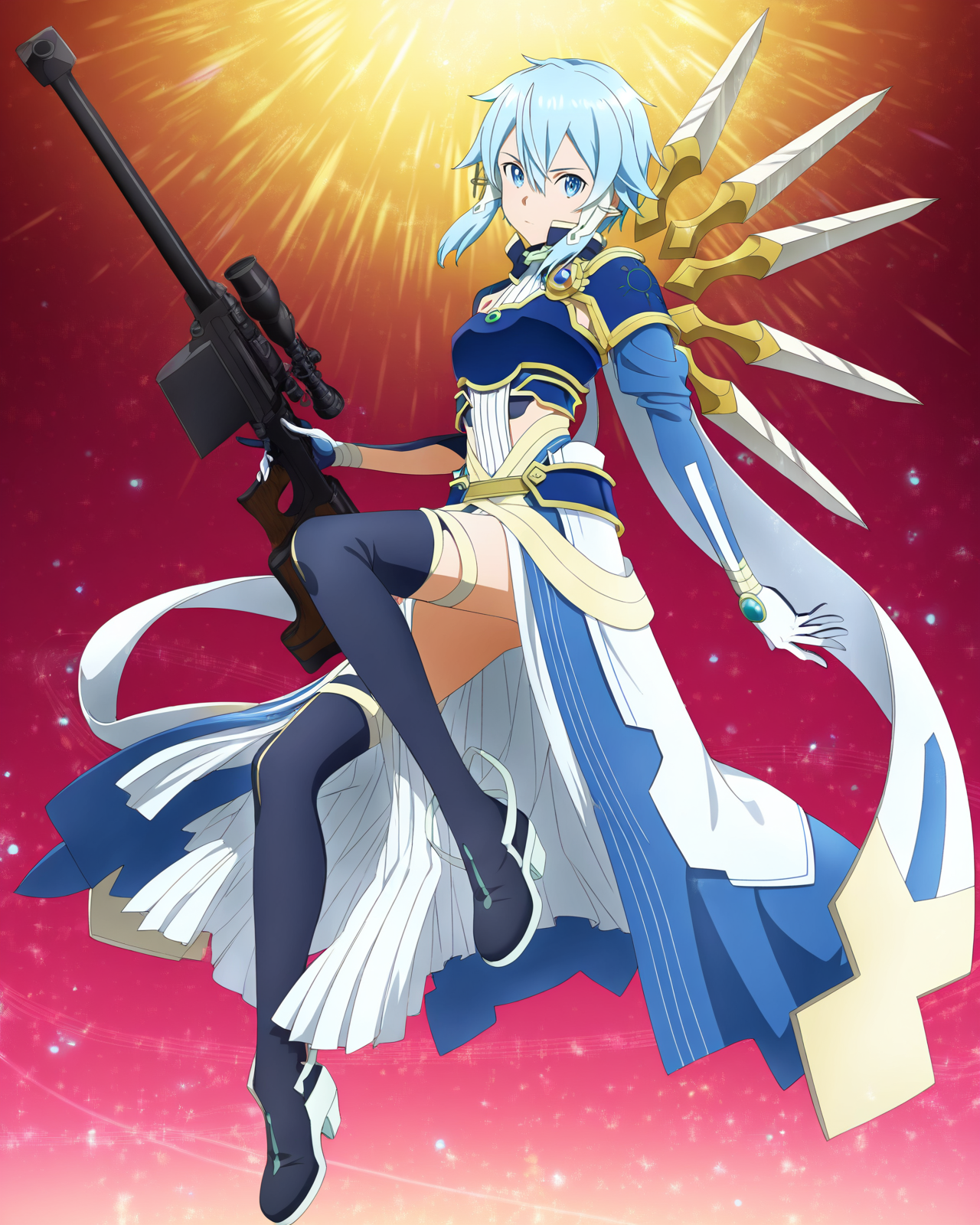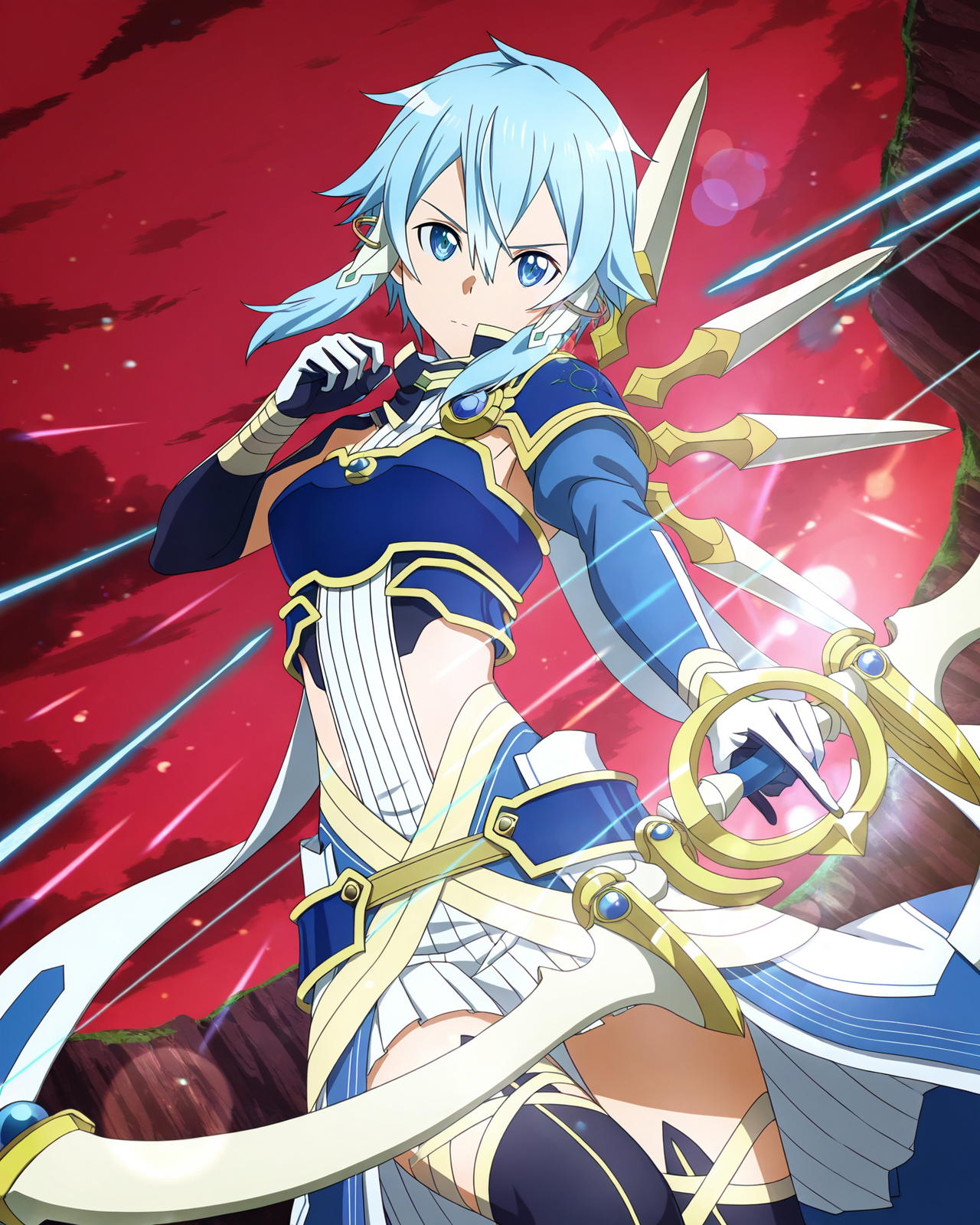 Sinon_Alicization, 1girl, solo, blue eyes, blue hair, short hair with long locks,