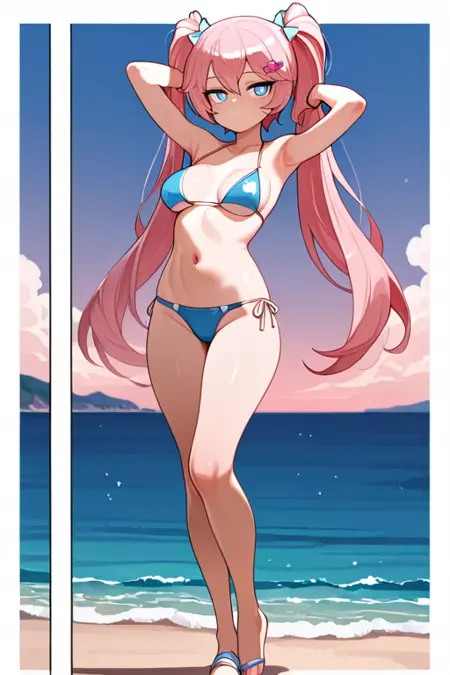 1소녀, 단독, hdAngelicBuster, 더블테일, 분홍색 머리, 헤어 리본, 파란 눈, 밝은 동공,