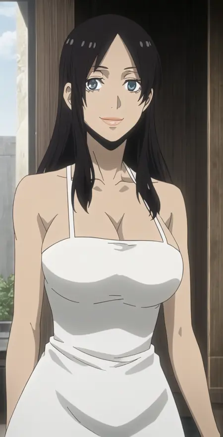 メインの衣装:「肩紐なしの白いスパゲッティストラップドレス」
