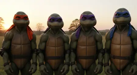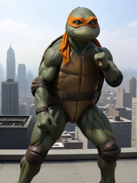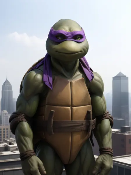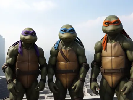 プロンプトで指定したタートルが正しく生成されない場合(たとえば、マスクの色が間違っている場合)、必ず「wearing purple/orange/blue/red bandana mask with eye-holes」というフレーズを使用することを強くお勧めします(()や/は含めないでください)。