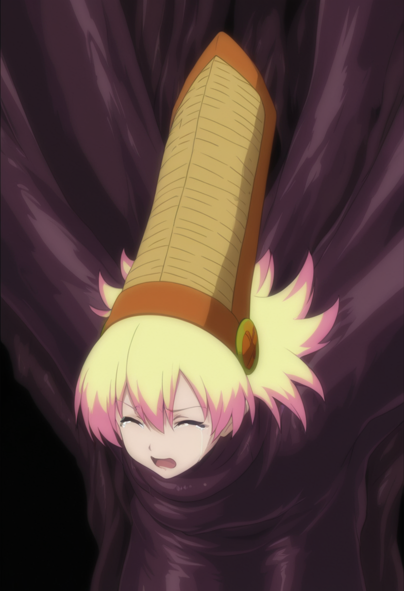 This is Lora, recreating the scene after the heroine is taken over by the enemy.