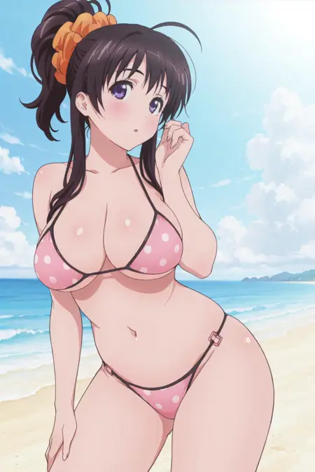 - 미나모토 치즈루, 파란 눈, 머리카락 끝, 긴 옆머리, 긴 머리, 큰 가슴