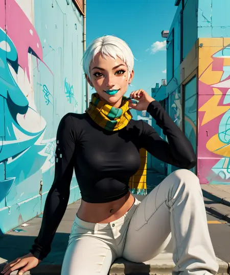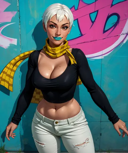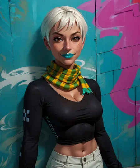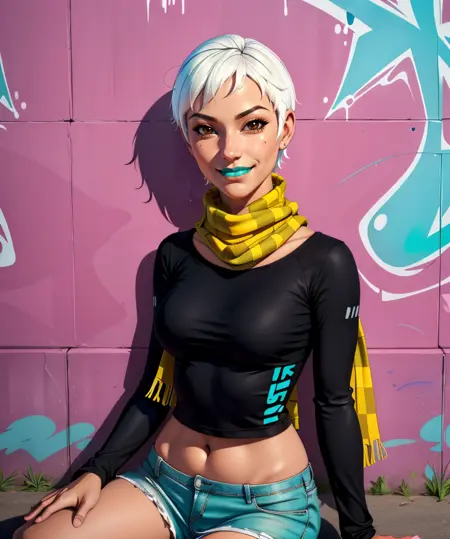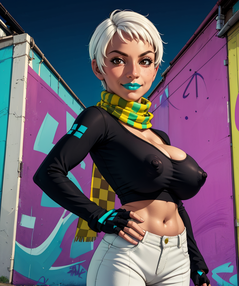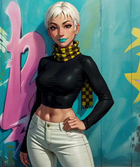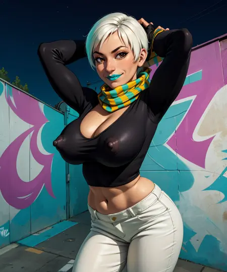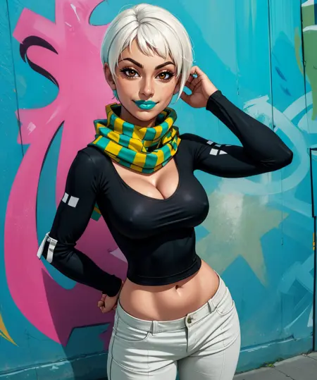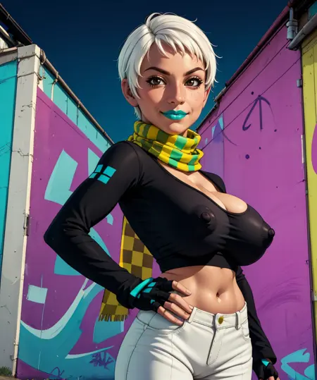 jazzJSRF, 茶色の目、アクア色の唇、 - 白髪、短髪、