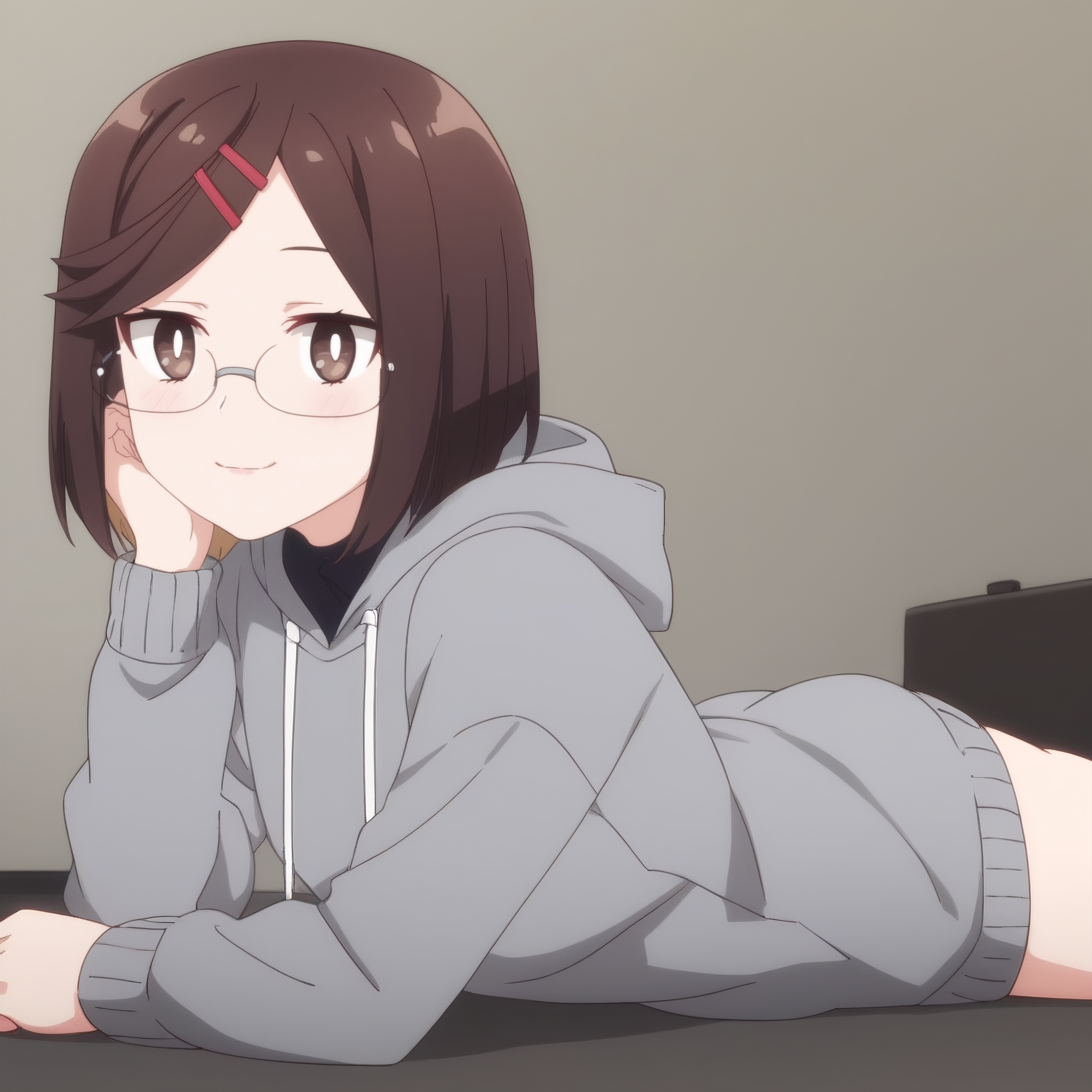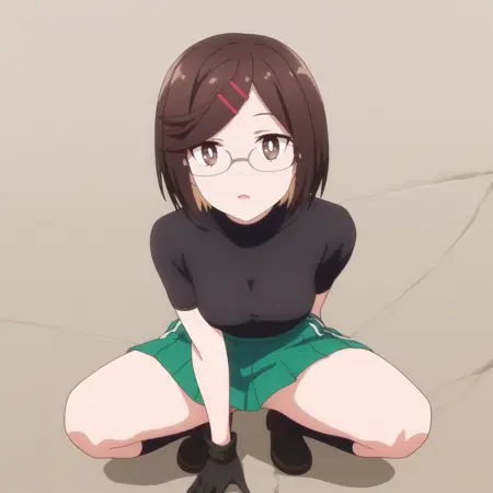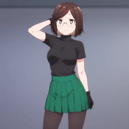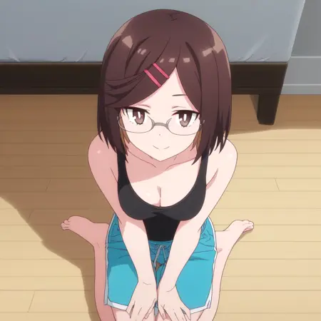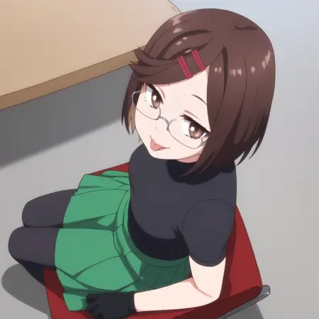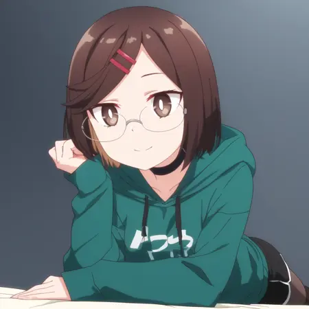 ANAKonoha,棕色头发,短发,眼镜,棕色眼睛,刘海,扫刘海,头发下可见眉毛,黑色镜框,头发位于眼睛之间,发夹,发饰,