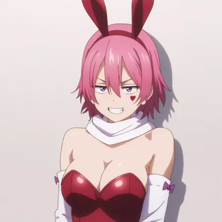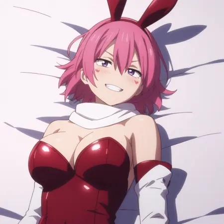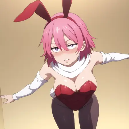 ANAYukari, pink hair, short hair, animal ears, rabbit ears, fake animal ears, hairband, hair between eyes, purple eyes, hair over one eye,