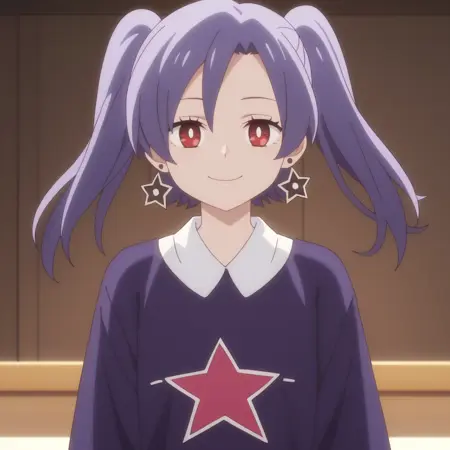 ANAAsuka,长发,紫发,红眼,耳环,刘海,星星耳环,双马尾,