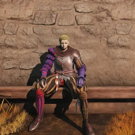 1소년 또는 1소녀, 단독, 갑옷, 퍼퍼진 소매, 장갑, 바지, 신발