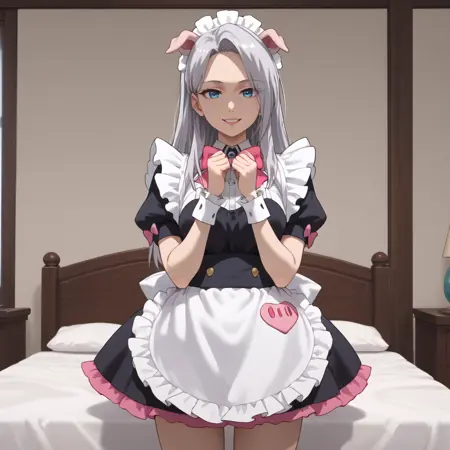 ZoyaMaid, 메이드, 앞치마, 메이드 헤드기어, 메이드 앞치마, 리본, enmaided, 짧은 소매, 드레스, 분홍 리본, 풍성한 소매, 프릴, 흰색 앞치마, 넥타이, 동물 귀, 돼지 귀,