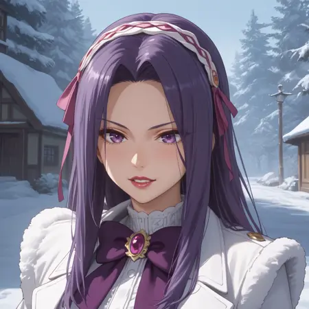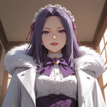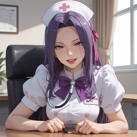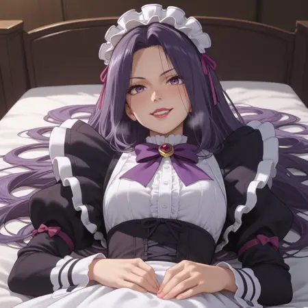 AMWNagi、長い髪、紫の髪、紫の目、リボン、前髪、髪飾り、非常に長い髪、 bow、分け目のある前髪、リップスティック、紫のリボン、ヘアバンド、