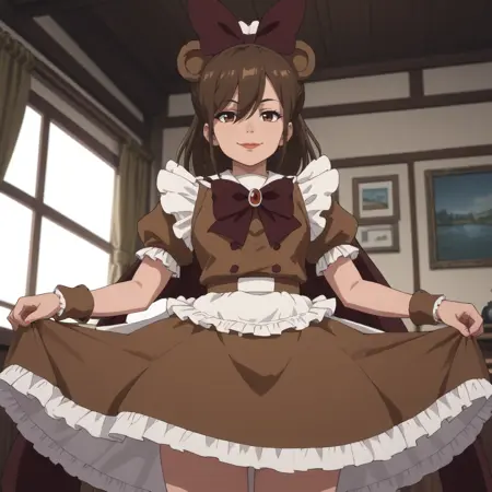 棕色连衣裙,荷叶边,围裙,长袖,项圈,女仆围裙,女仆,女仆头饰,