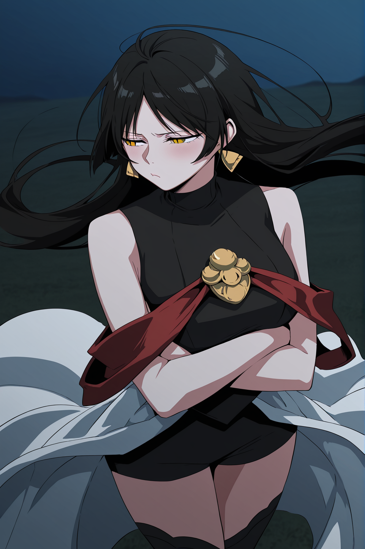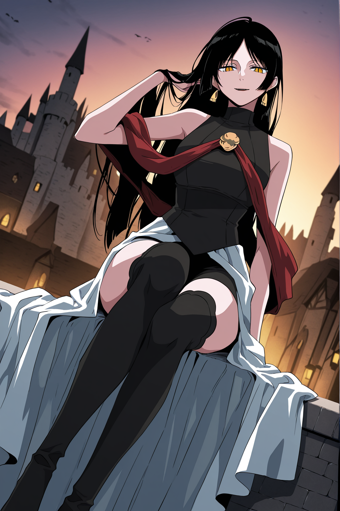 莉莉丝,1个女孩,独身,竖瞳,黄眼睛,黑发,长发,分层刘海,头发位于眼睛之间,长侧发,金色耳环,
