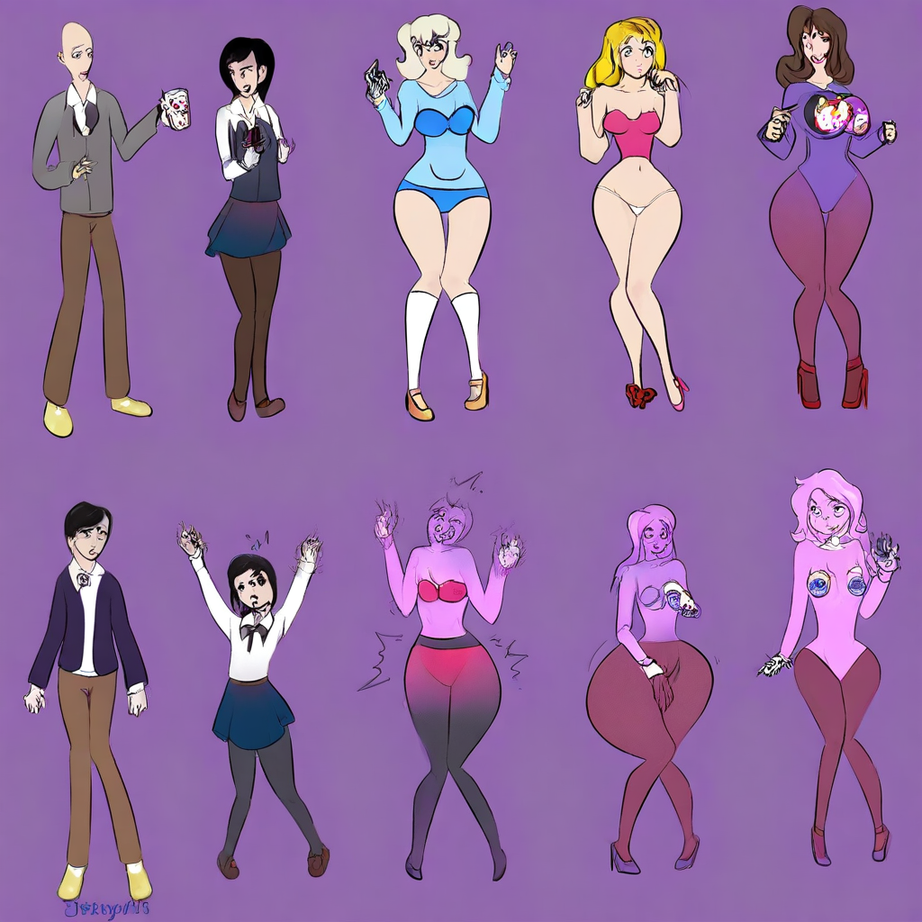 変化のシーケンスの画像で学習されました。ビンボフィケーション/シッシフィケーションから、フタやアンスロポモルフィックな変化まで幅広く対応しています。普段出しているモデルよりもやや粗いですが、少し予測不可能な結果が好きです。