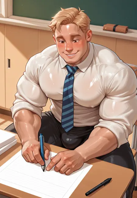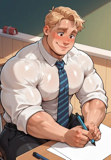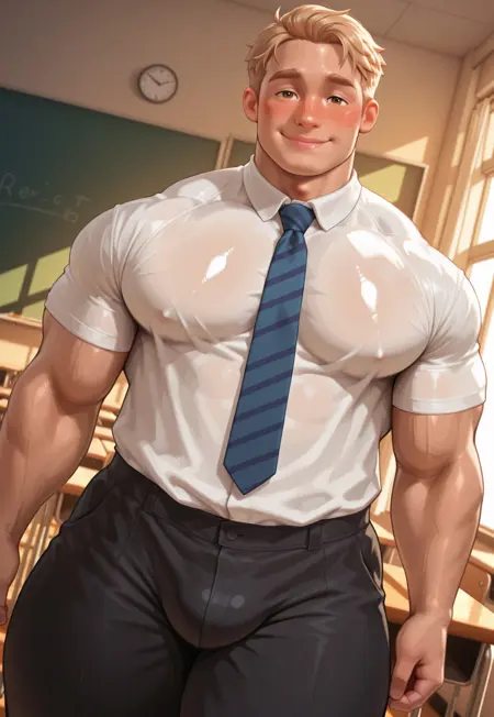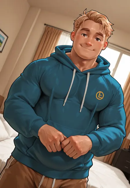 N1CKN3LS, blonde hair, brown eyes, chubby, big pecs, round face